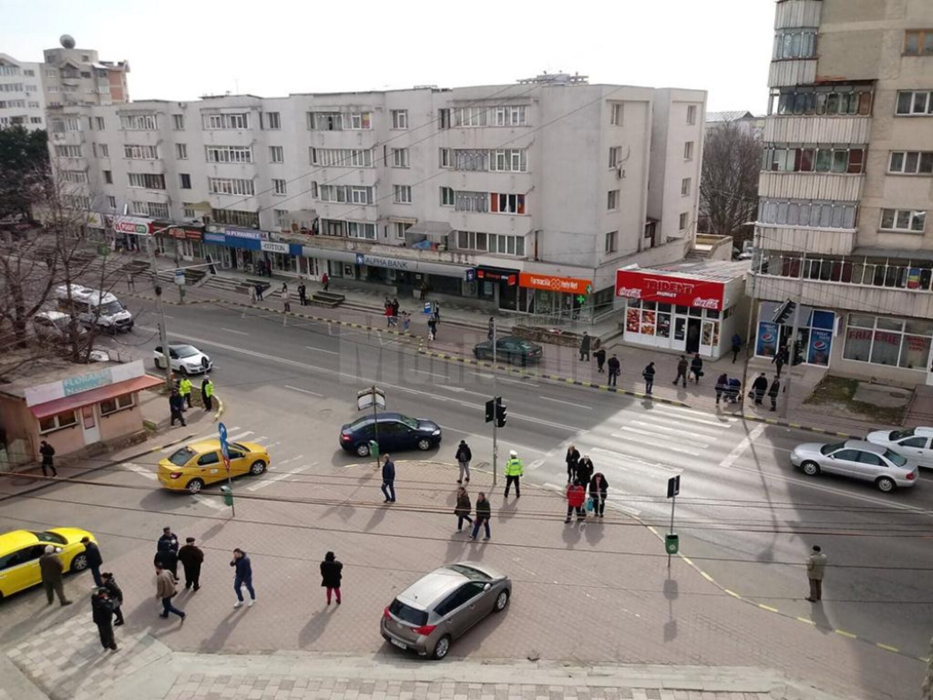 Tocmai de aceea a fost necesară prezența Poliției, care a atras atenția celor care treceau pe acolo asupra faptului că traversarea străzii de către pietoni se face prin acționarea butonului de la semafor și așteptând să apară culoarea verde.