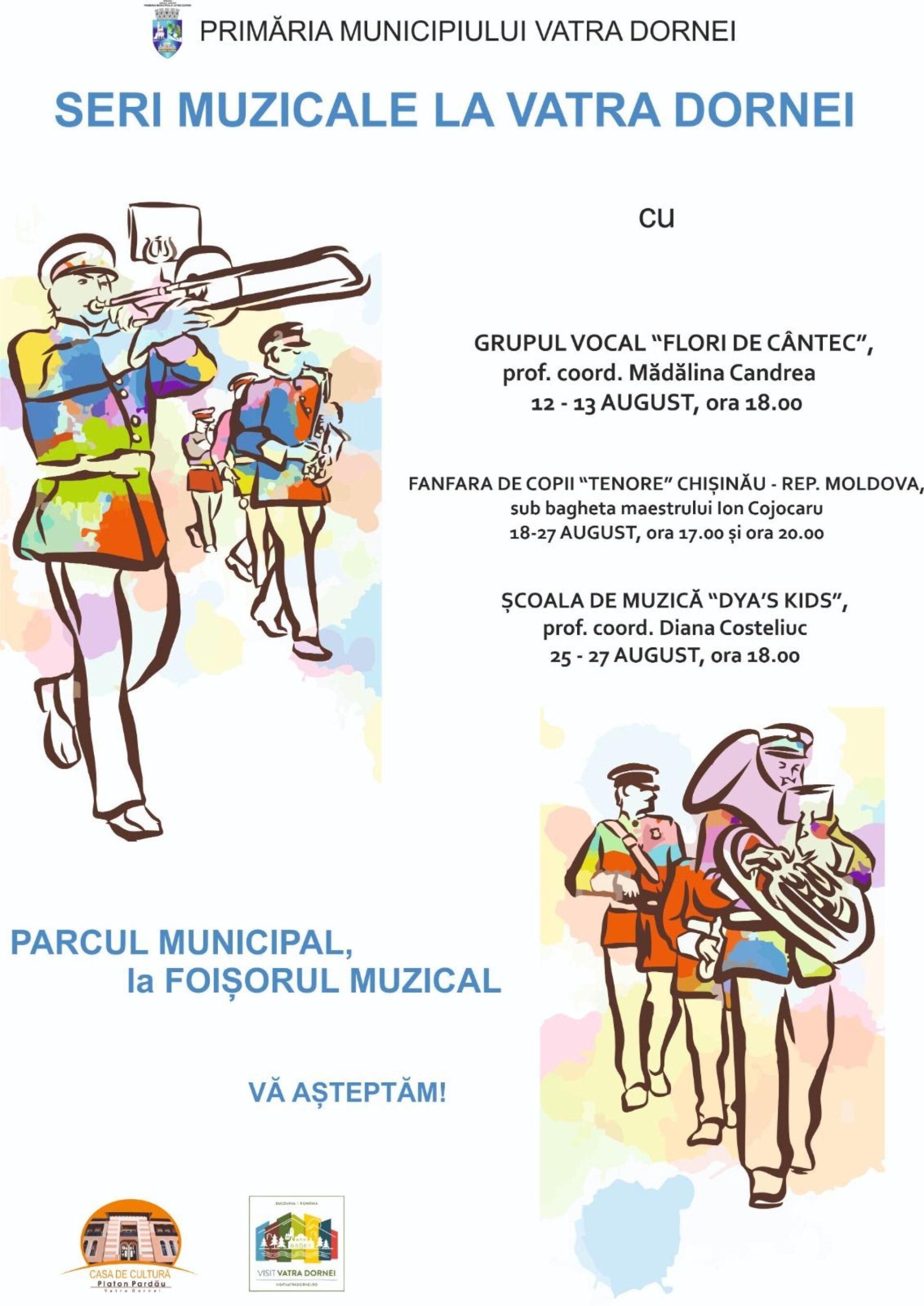 La Vatra Dornei se vor desfășura, în luna august, „Seri muzicale”, spectacole de cafe-concert, muzică de fanfară, în zilele de weekend, în Parcul Municipal, la Foișorul Muzical.