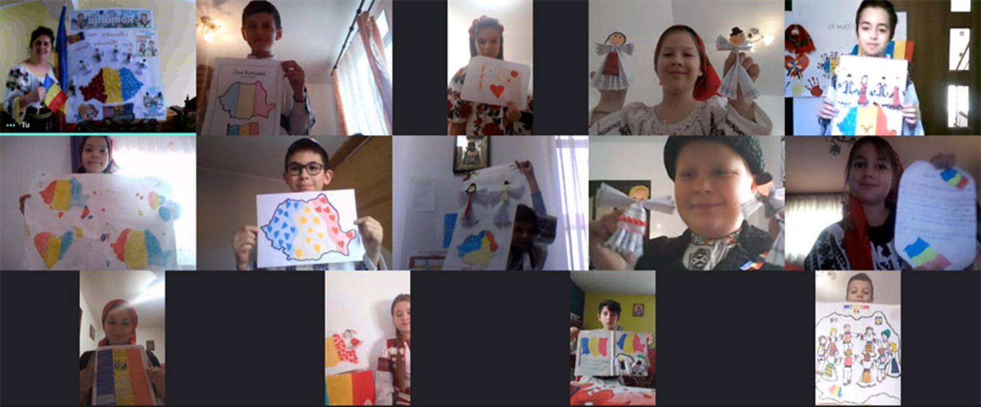 „Tricolorul ca simbol al națiunii românești apare la începutul secolului XIX. Prezența celor trei culori în canafuri și în picturile de pe pânza drapelului răscoalei lui Tudor Vladimirescu li se atribuie pentru prima oară semnificația: Libertate (albastrul cerului), Dreptate (galbenul ogoarelor), Frăție (roșul sângelui). Stema României, ca însemn național, constă într-un vultur sau o acvilă, pe un scut, având aripile deschise; în cioc ține o cruce, iar în gheare o sabie și un sceptru. Între aripile protectoare se află un scut împărțit în cinci părți cuprinzând stemele celor cinci regiuni istorice: Țara Românească, Oltenia, Moldova, Transilvania și Dobrogea”, le-a explicat copiilor profesor învățământ primar Chidoveț Mariana Aurica. Șezătoarea a continuat cu discuții referitoare la însemnătatea tradițiilor, obiceiurilor și mai ales a costumului popular. În machetele realizate de către elevi se regăsesc stilizate costume populare purtate de țărani în Hora Unirii. După discuții, elevii au participat la un joc interactiv denumit „Ce înseamnă să fii român ?”. În finalul activității, elevii au recitat poezii, au cântat, au transmis mesaje tuturor românilor de Ziua Națională și au întins o Horă a Unirii online. Vă reamintim că șezătoarea face parte din tradiția românească din mediul rural, când toți se adunau în casa gazdei, în serile de iarnă, în timp ce lucrau, se întindeau la povești, cântau, spuneau glume , snoave, proverbe și ghicitori”, a completat coordonatorul de proiecte și programe educative prof. Aurica Chidoveț, de la Școala Gimnazială Putna.