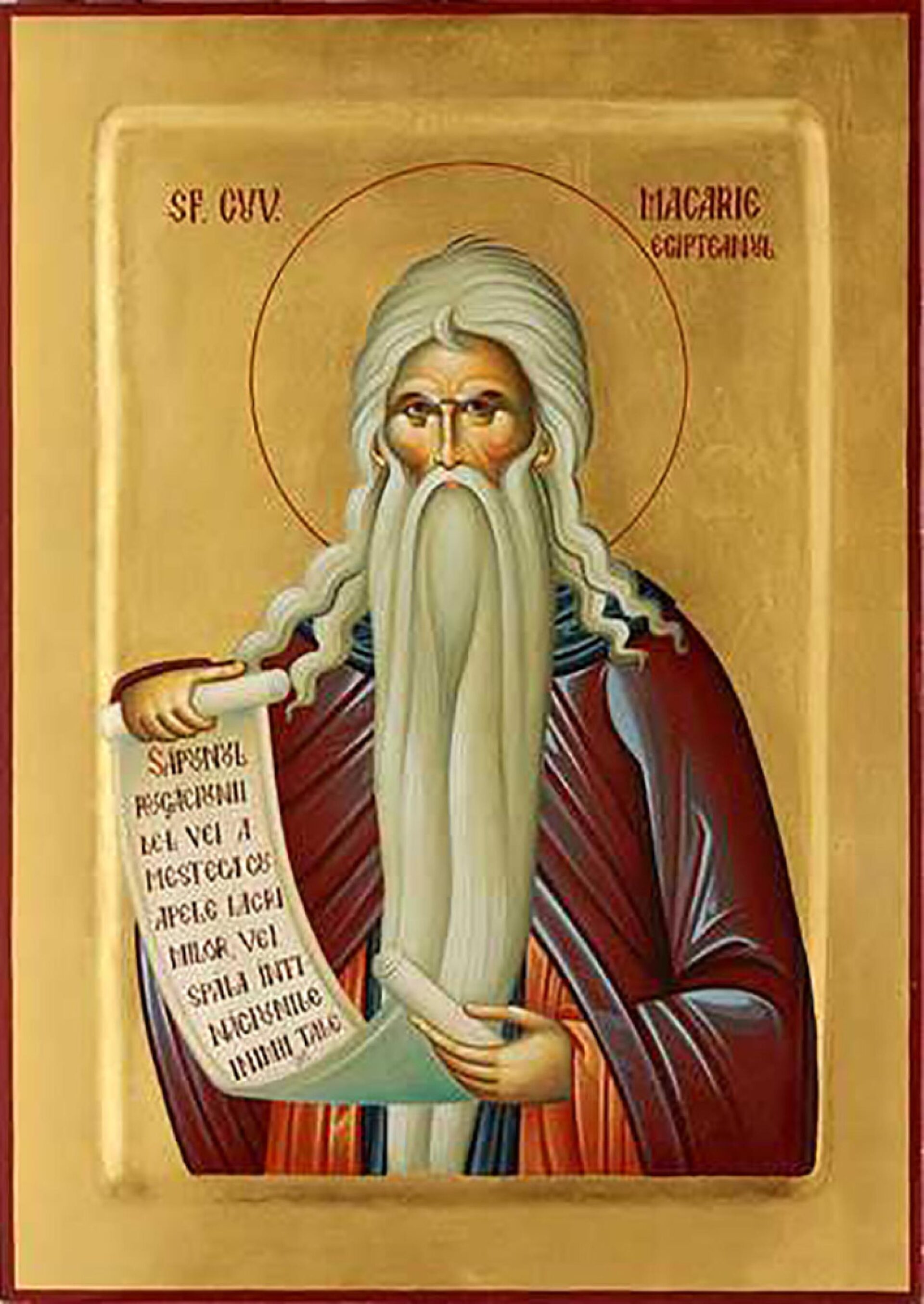 Numit și Macarie Egipteanul, s-a născut în jurul anului 300 în Egipt, în localitatea Ptinapar, din părinți creștini, și din fragedă vârstă s-a nevoit la deprinderea credinței și a faptelor bune, ajungând locaș dumnezeiescului Duh.