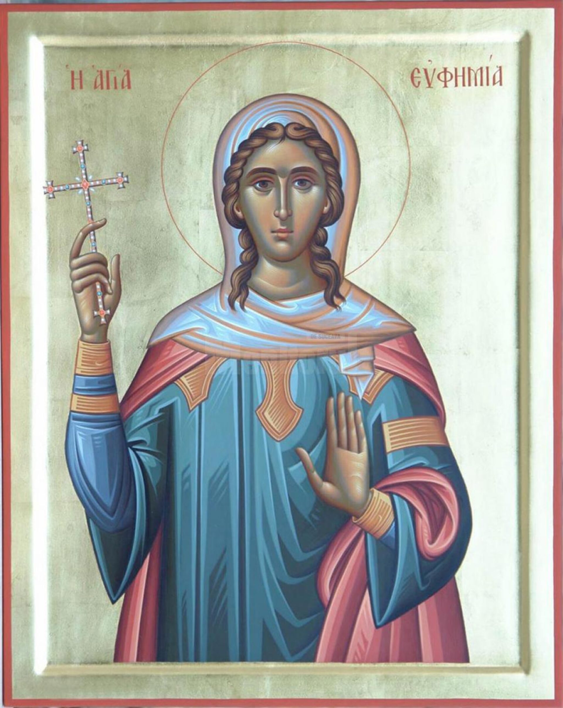 Biserica o pomenește astăzi pe Sfânta Mare Muceniță Eufimia, martirizată în timpul domniei împăratului roman Dioclețian. În catedrala ridicată deasupra mormântului sfintei din Calcedon s-a întrunit Sinodul IV Ecumenic, în anul 451. Cu acest prilej, prin moaștele sale s-a arătat în chip minunat credința cea adevărată.
