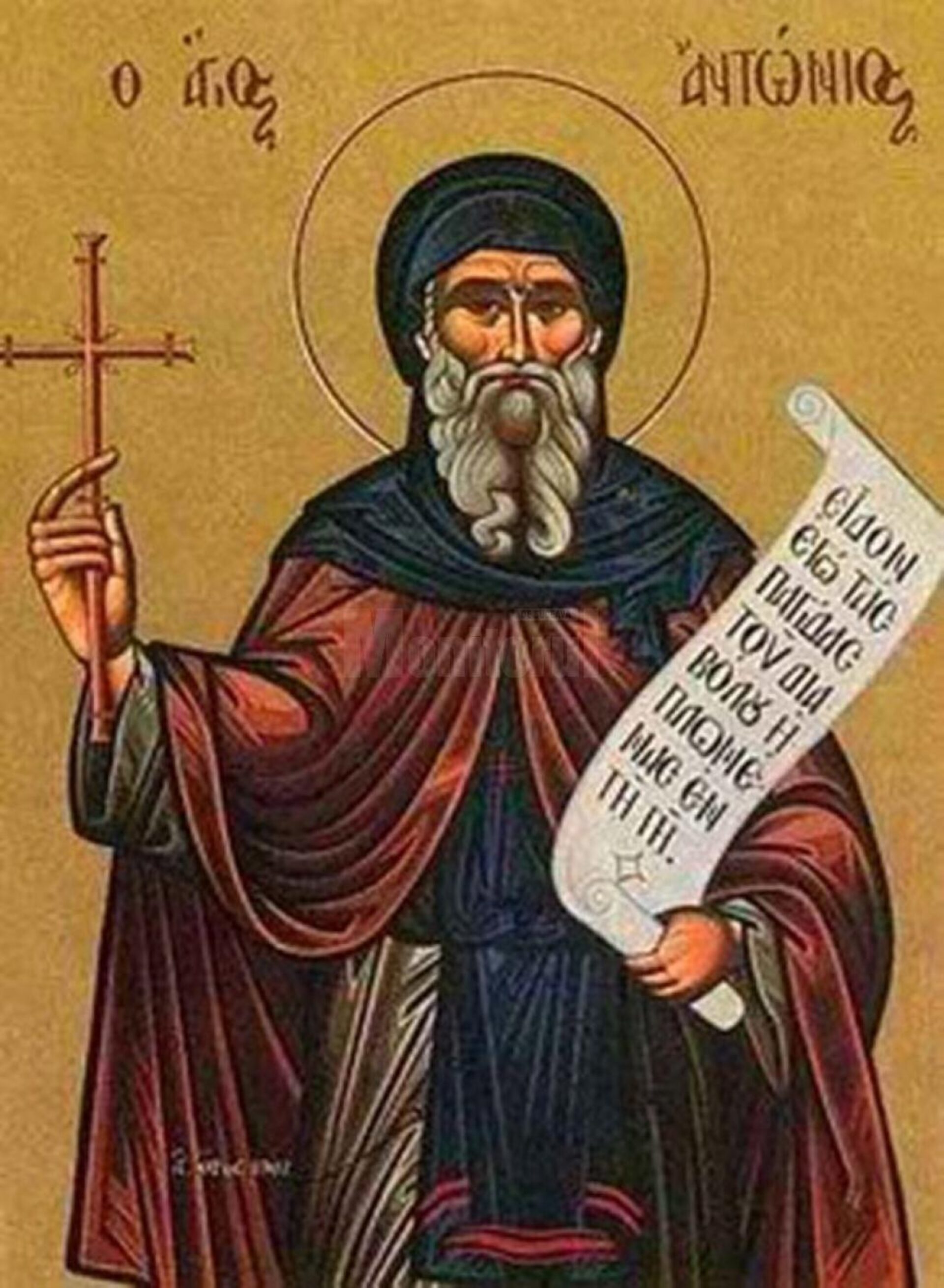 Numit de multe ori Marele Antonie sau Antonie Egipteanul, pentru a fi deosebit de Sfântul Anton de Padova sau Antonius Abbas, un sfânt de tradiție apuseană, sfântul răsăritean s-a născut în jurul anului 251, în Egiptul de Sus, din părinți creștini. La 20 de ani, după moartea părinților săi, a auzit în biserică citindu-se fragmentul din Evanghelie: „De voiești să fii desăvârșit, mergi, vinde avuțiile tale și venind urmează Mie“ (Matei 19, 21). Urmând îndemnului evanghelic, tânărul Antonie și-a împărțit averea săracilor, și-a lăsat sora mai mică în grija unor credincioase cunoscute și s-a retras în singurătate. Inițial a trăit într-o colibă la marginea satului natal, așa cum obișnuiau în acea vreme cei care doreau să aibă o viață ascetică. A avut ca îndrumător spiritual un bătrân ascet din apropiere, devenind ucenicul acestuia.