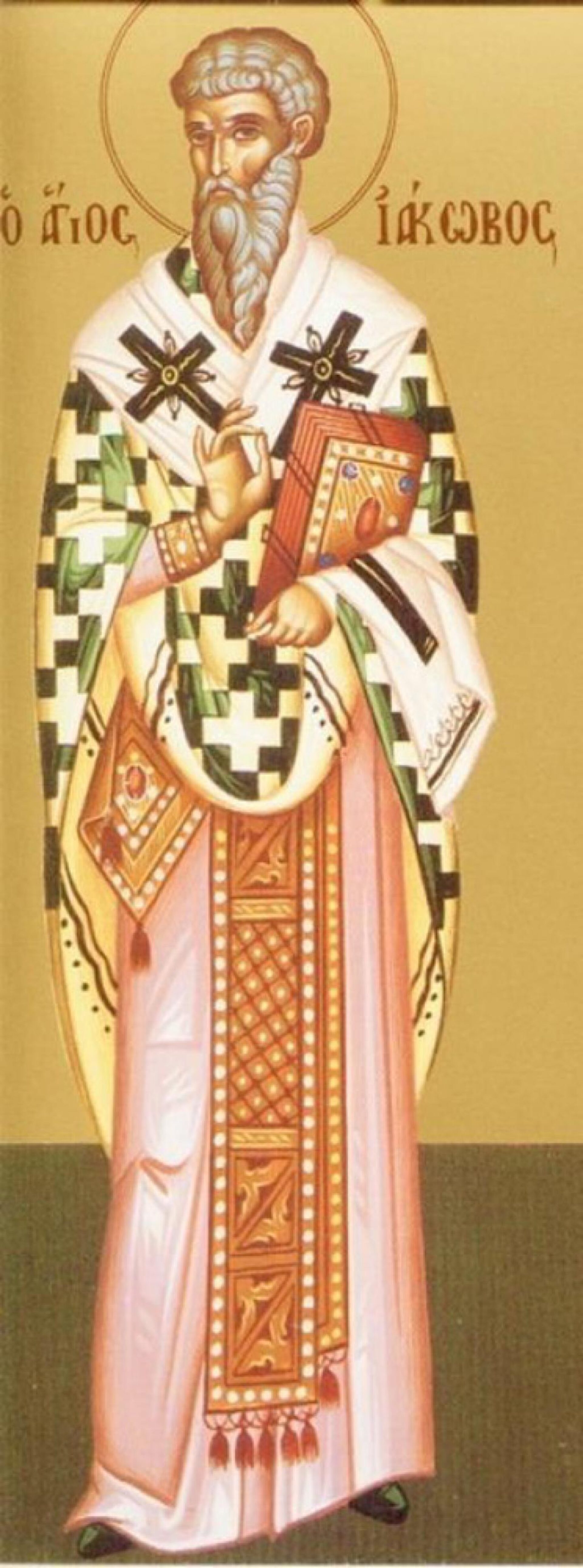 Sfântul Iacob (sec. 7) a trăit pe vremea împăratului Constantin al 5-lea Copronim (741-775) și a îmbrățișat viața monahală de tânăr, înfrânându-se cu postiri, cu privegheri și cu alte aspre nevoințe. Se îndeletnicea cu scrierea dumnezeieștilor cărți, mai întâi luminându-și mintea cu rugăciunea cea din inimă. S-a învrednicit de treapta episcopiei și a suferit mult pe vremea prigoanei împăratului Constantin Copronim, cerându-i-se să lepede cinstirea sfintelor icoane. Nevrând să spună faptul că sfintele icoane sunt idoli, a îndurat multe chinuri, izgoniri, întemnițări, foame și sete și multe strâmtorări, dar nimic nu a slăbit tăria dreptei lui credințe. Și așa, întru acele cumplite chinuri și-a dat fericitul Iacob sufletul său în mâinile Domnului.