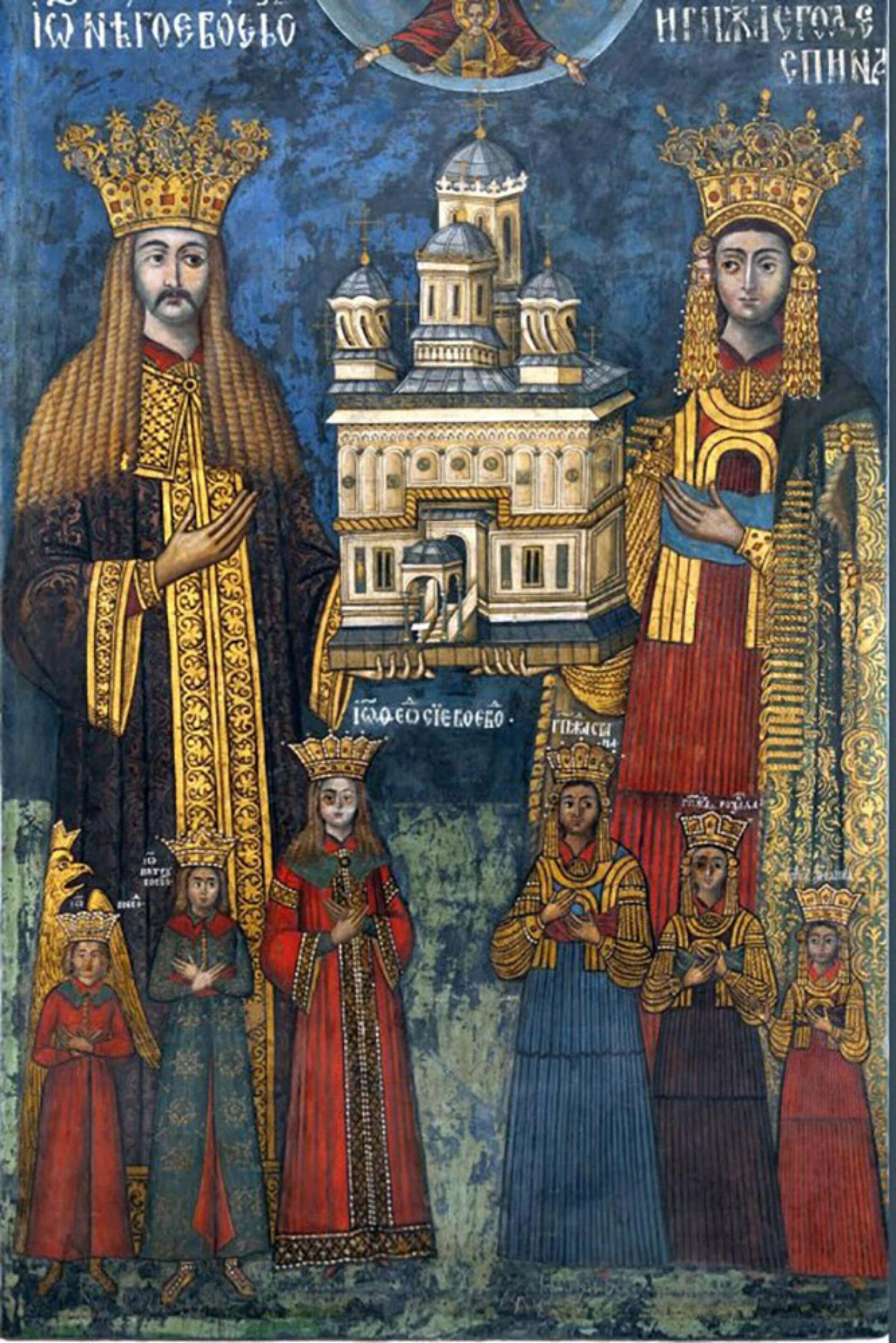Cea mai importantă realizare a sfântului voievod este Mănăstirea de la Curtea de Argeș, despre care Nicolae Iorga, cel mai mare istoric român, scria în Istoria românilor, în capitolul sugestiv intitulat Hegemonia culturală a lui Băsărabă Neagoe: „După ce se înălțase locașul cu puternicii stâlpi de piatră în pronaos, cu îngustele ferești oblice în turle, cu brâul și plăcile sculptate, de formă armenească, pe linii înălțate peste măsura obișnuită în Serbia, înfățișă, alături de sfinții închinărilor obișnuite, pe însăși ctitorii, în veșminte împărătești, cu înalte coroane pe cap…” O descriere frumoasă a marelui nostru istoric, din care remarcăm sinteza lumii ortodoxe reflectată în ctitoria sfântului voievod și simbolistica tabloului votiv care ne duce la mesajul continuității bizantine la domnitorii noștri care se considerau succesori ai marilor bazilei, având astfel subliniată încă o dată ideea lui Nicolae Iorga: Bizanț după Bizanț.