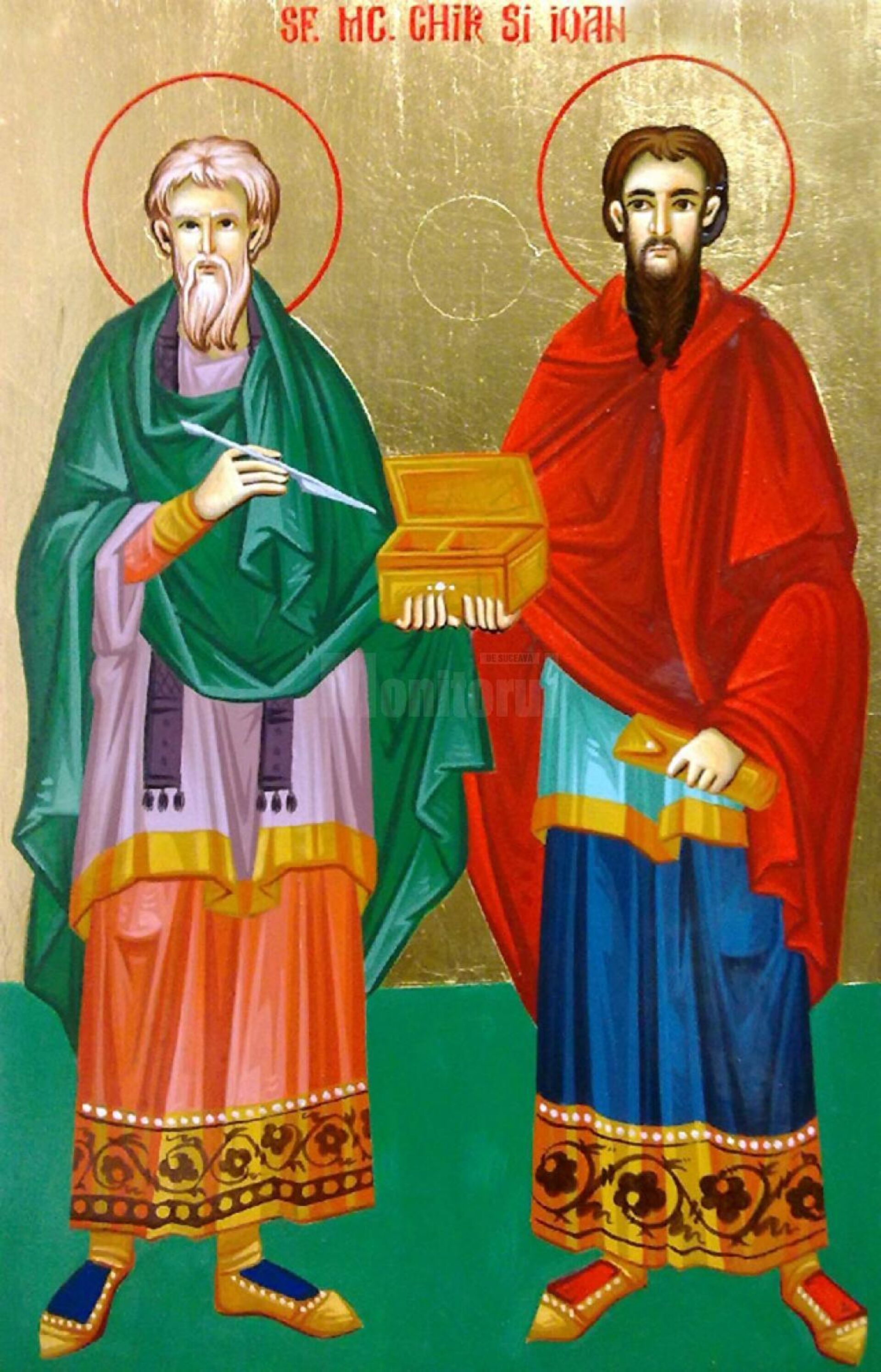 Fericitul Chir era din Alexandria Egiptului și ajunsese cu darul lui Dumnezeu, după multă învățătură, doctor iscusit, încât tămăduia bolile trupești și sufletești ale oamenilor. Stârnindu-se prigoană împotriva creștinilor, Sfântul Chir a plecat din Egipt în Arabia, intrând în viața pustnicească. În vremea aceea, s-a întâmplat să se afle la Ierusalim un dreptcredincios, anume Ioan, care lăsând toate, chiar și dregătoria sa, voia să devină creștin. Acesta, auzind de minunile lui Chir, l-a căutat și găsindu-l a devenit ucenicul său. Astfel, împreună cutreierau cetățile și satele, învățând cuvântul lui Dumnezeu și vindecând toată boala. Atunci, o femeie creștină, Atanasia, a fost prinsă de păgâni, împreună cu cele trei fiice ale sale, Teodota, Teoctista și Eudoxia. Deci, Chir și Ioan, temându-se ca nu cumva cele patru femei creștine să se lepede de Hristos, au mers la ele în temniță și le îmbărbătau. Aflând dregătorul cetății că cei doi Îl mărturisesc pe față pe Hristos, i-au supus la multe și cumplite chinuri, apoi a poruncit să li se taie capetele.