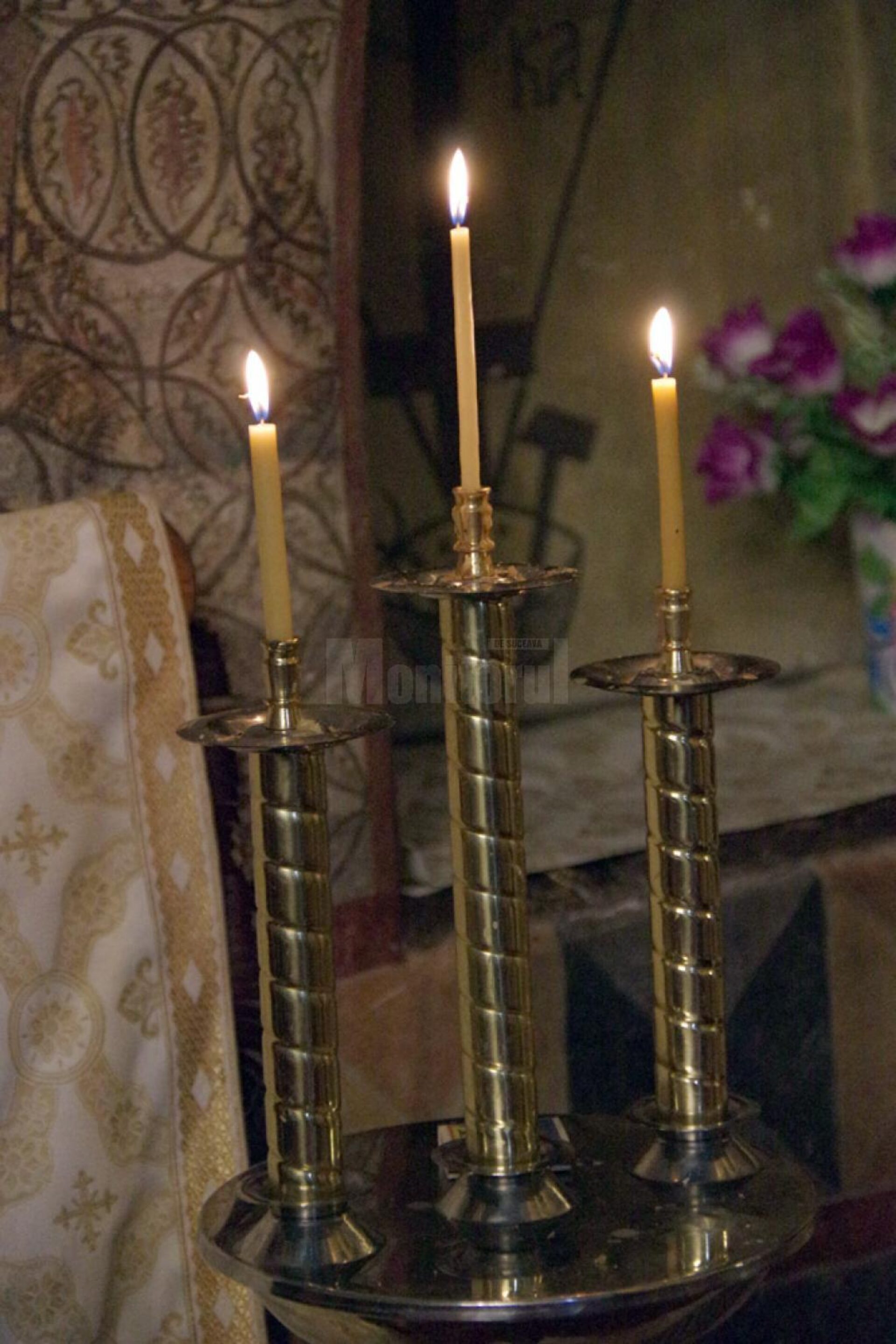 La Proscomidiar se aprind sfeșnice cu o lumânare. Pe Sfânta Masă se așază două sau trei sfeșnice cu una sau mai multe lumânări. În dreptul icoanelor împărătești, pe solee, stau sfeșnicele mari împărătești, în care ard una sau mai multe lumânări, în timpul Liturghiei.