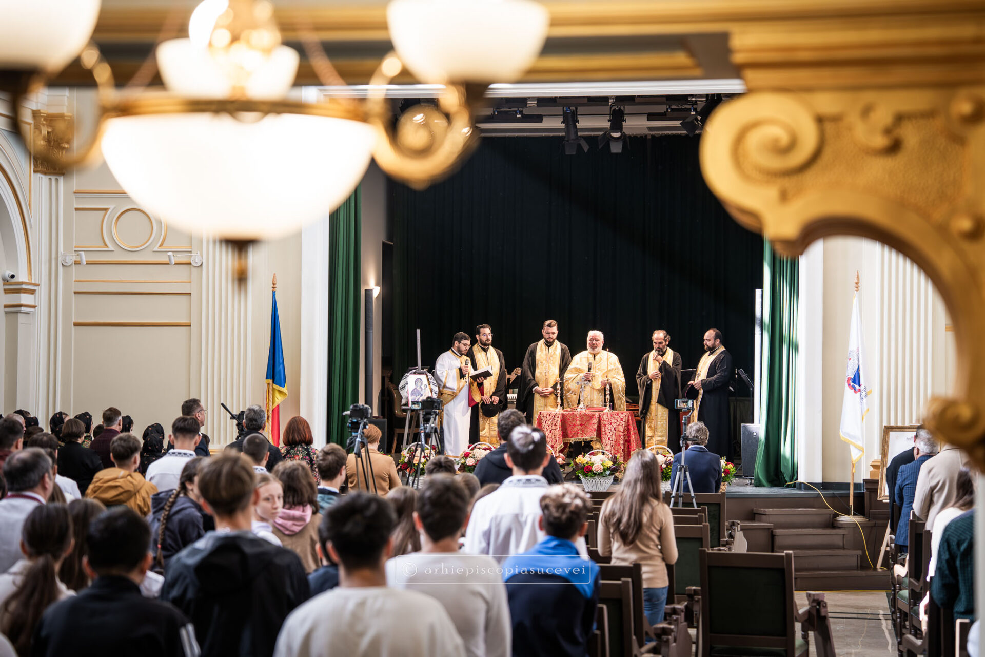 Mesajul de binecuvântare al Înaltpreasfințitului Părinte Calinic, Arhiepiscop al Sucevei și Rădăuților, în cadrul căruia și-a exprimat recunoștința pentru maniera exemplară în care s-au implicat organizatorii și participanții acestei manifestări academice cu valențe culturale, a fost transmis de pr. consilier Constantin-Ciprian Blaga.