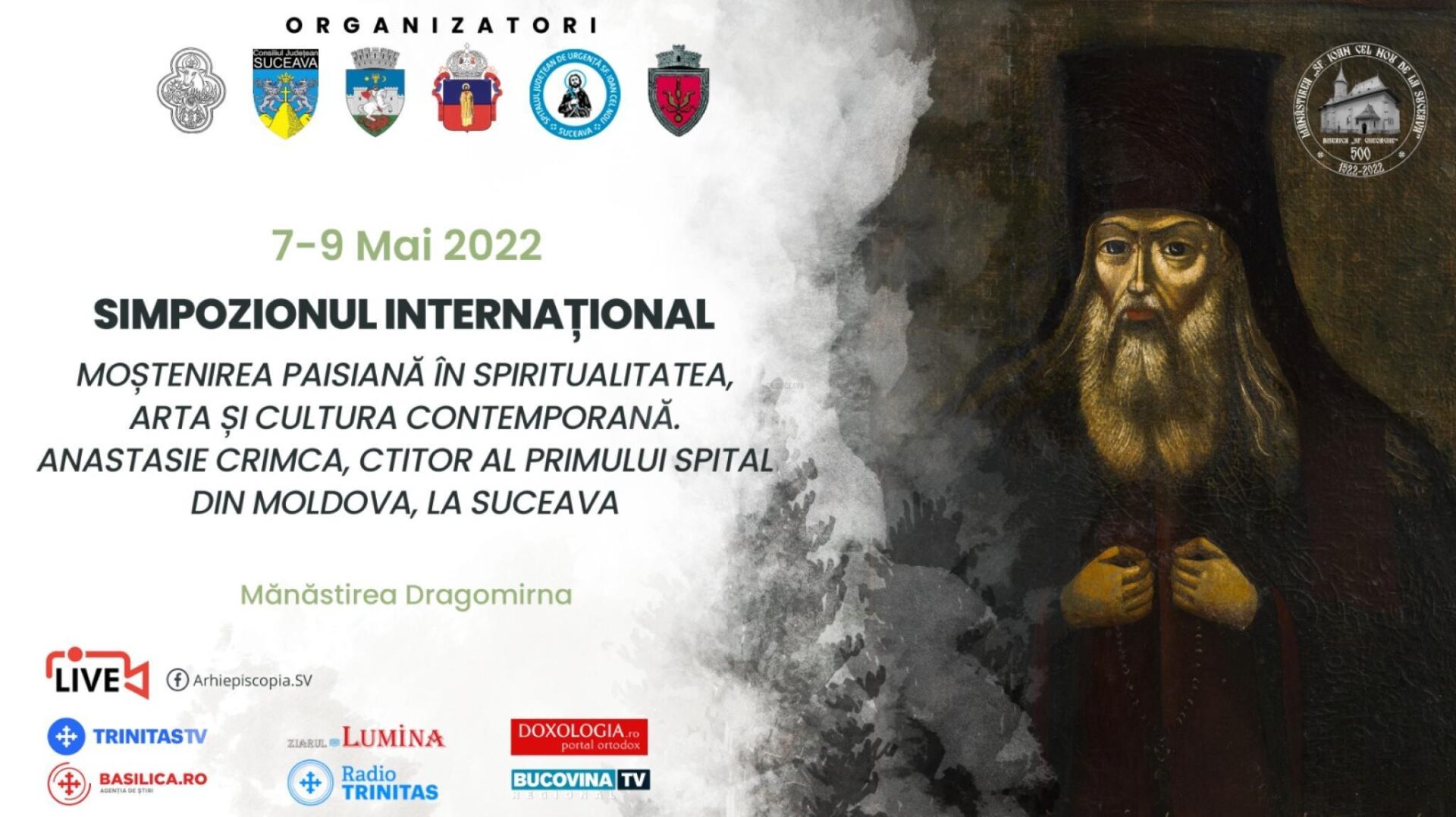 Luni, 9 mai, vor avea loc lucrările Simpozionului Internațional „Moștenirea paisiană în spiritualitatea, arta și cultura contemporană. Anastasie Crimca, ctitor al primului spital din Moldova, la Suceava”.