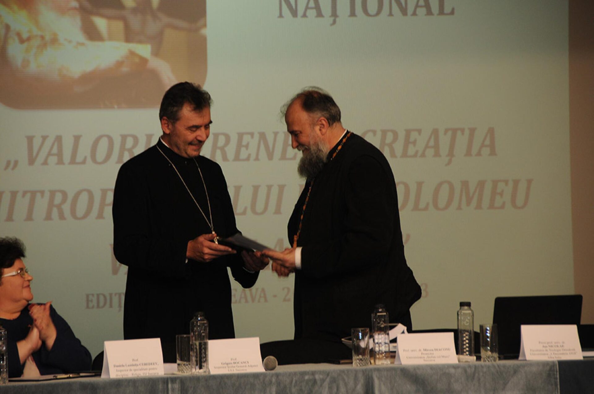 Microfonul a fost preluat apoi, pentru deschiderea oficială, de prof. Daniela Ceredeev, inspector de religie la IȘJ Suceava, care i-a amintit pe bravii organizatori ai celor 10 ediții ale simpozionului dedicate Mitropolitului Bartolomeu și a vorbit despre lucrările prezentate aici de-a lungul timpului.