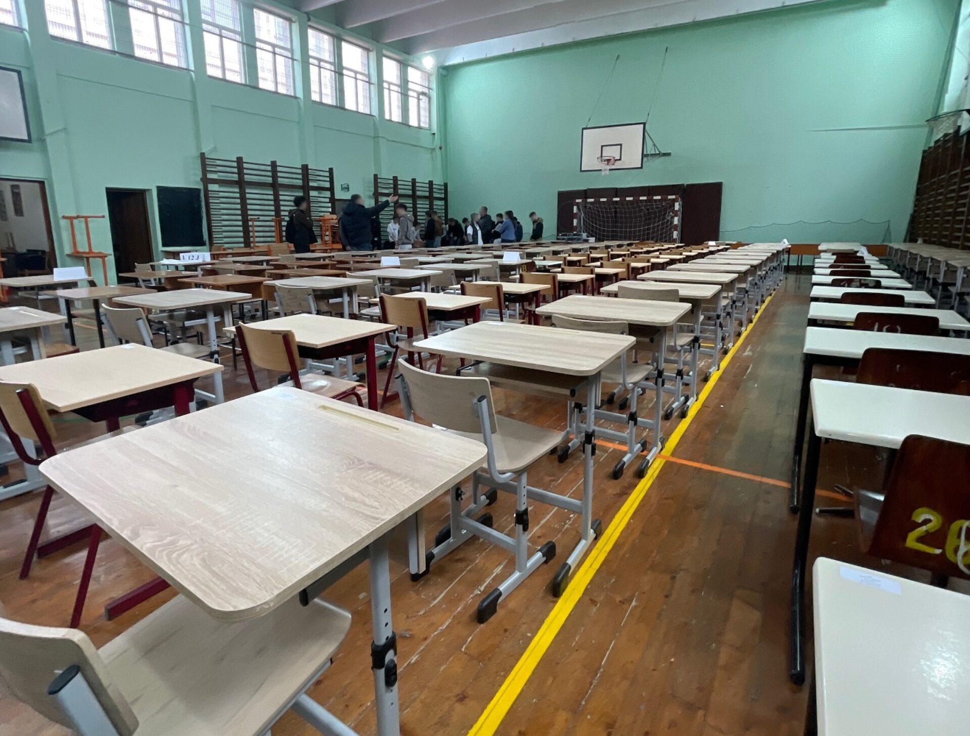 Cei 292 de elevi din clasa a XII-a dau proba în sala de sport, unde au fost amplasate bănci individuale.