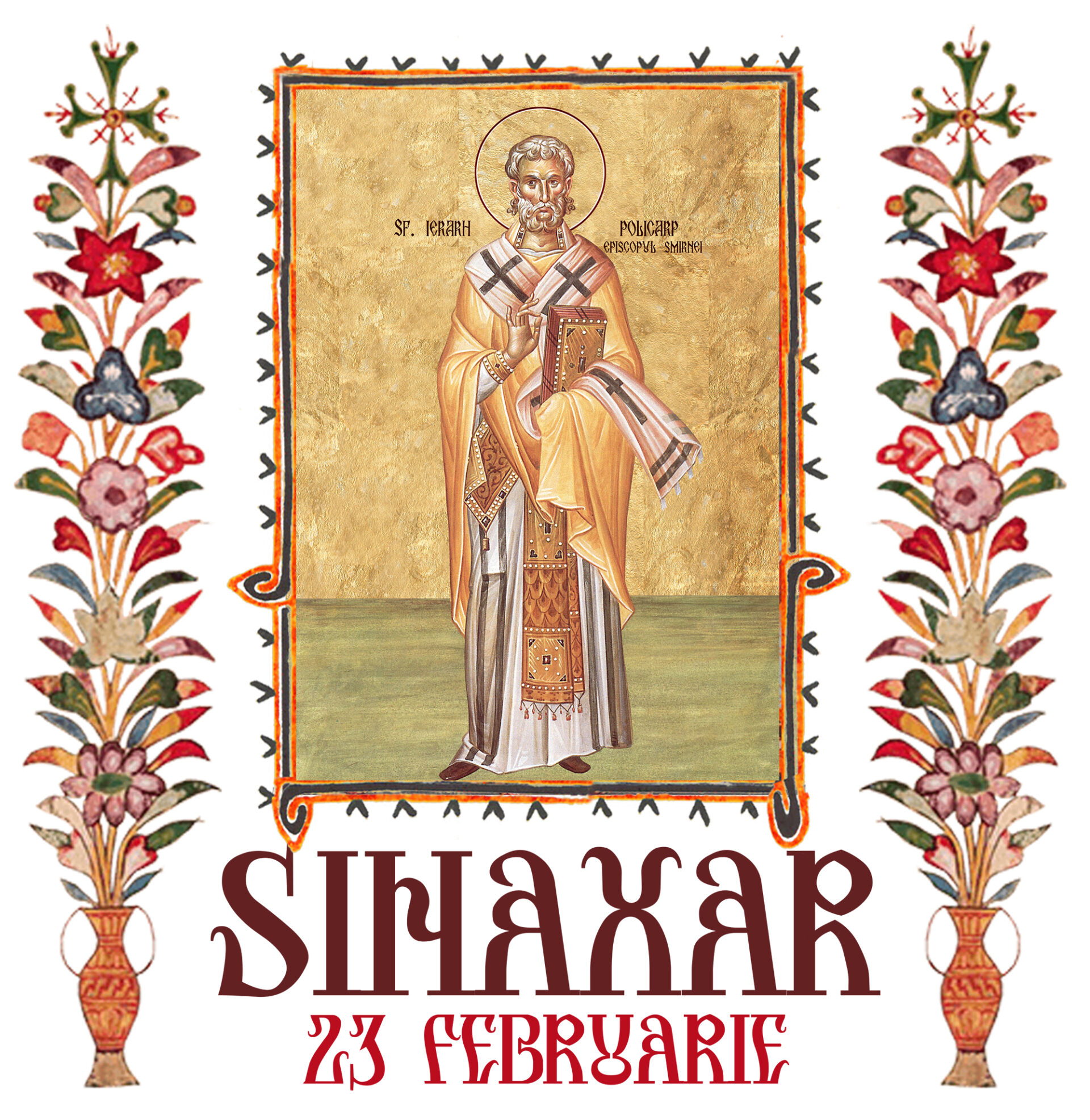 Astăzi facem pomenirea Sfântului Sfințit Mucenic POLICARP, episcopul Smirnei, care a fost ucenicul Sfântului Apostol și Evanghelist Ioan și care s-a săvârşit prin foc și împuns cu suliţa (+ 156)