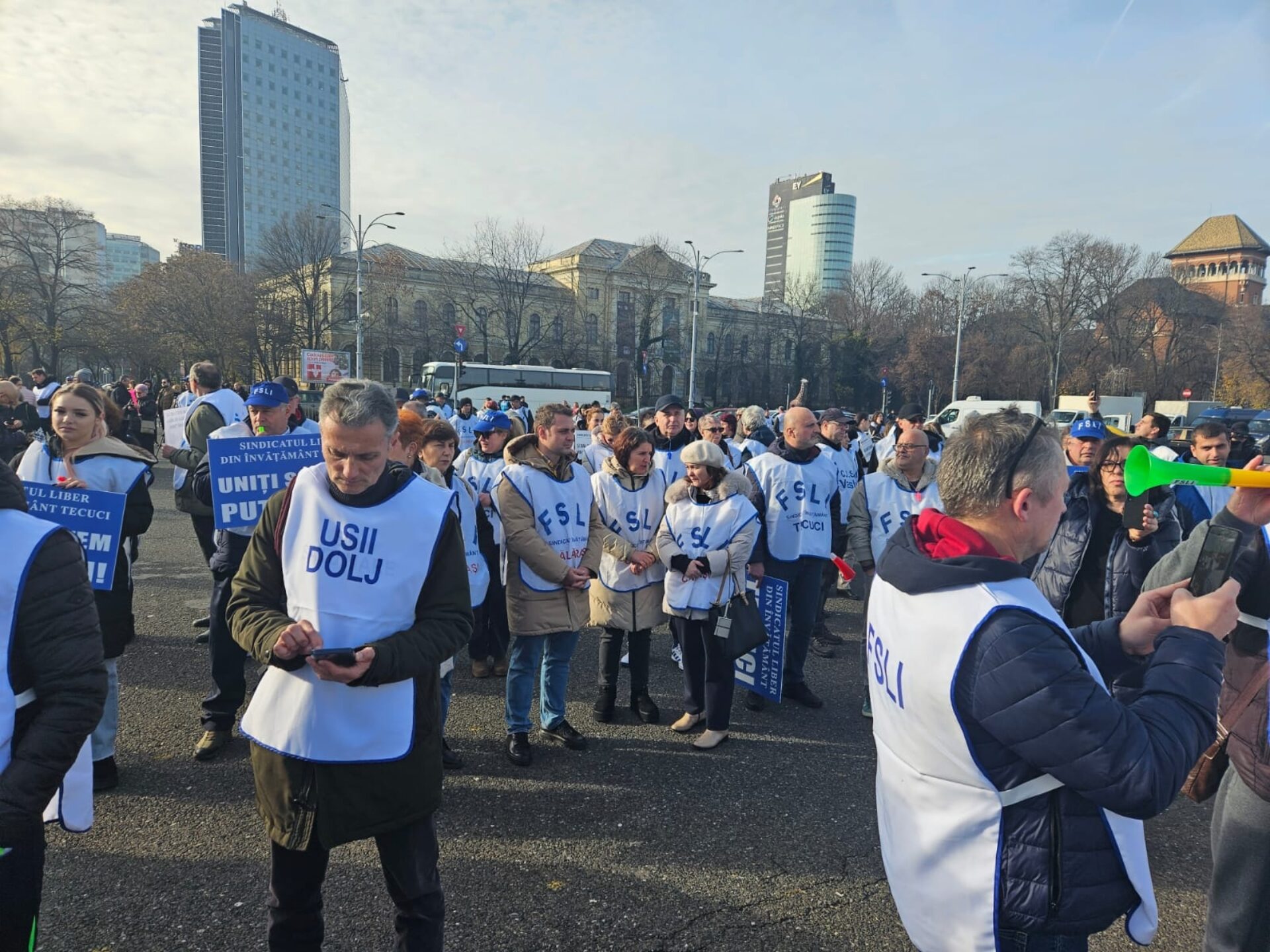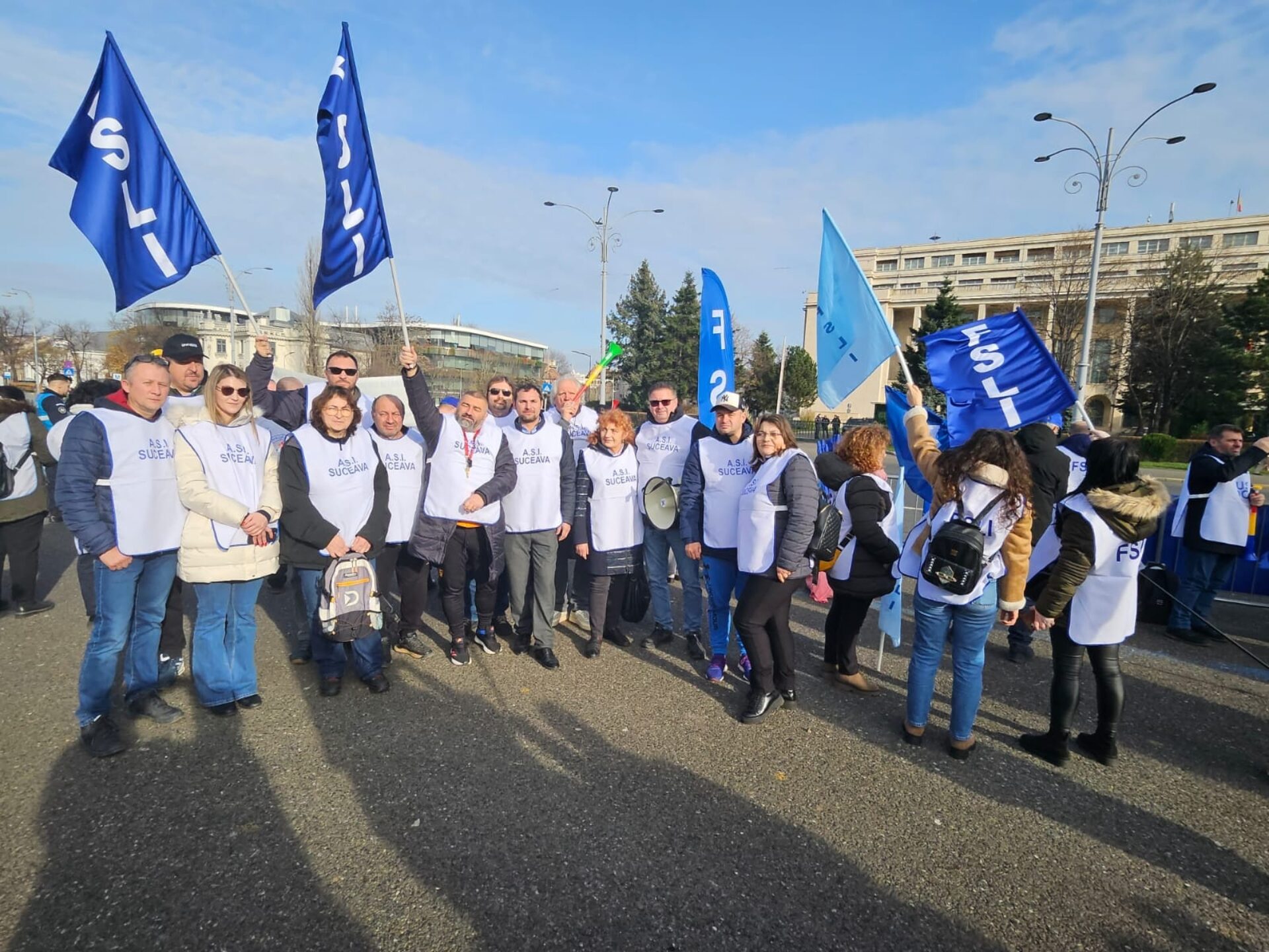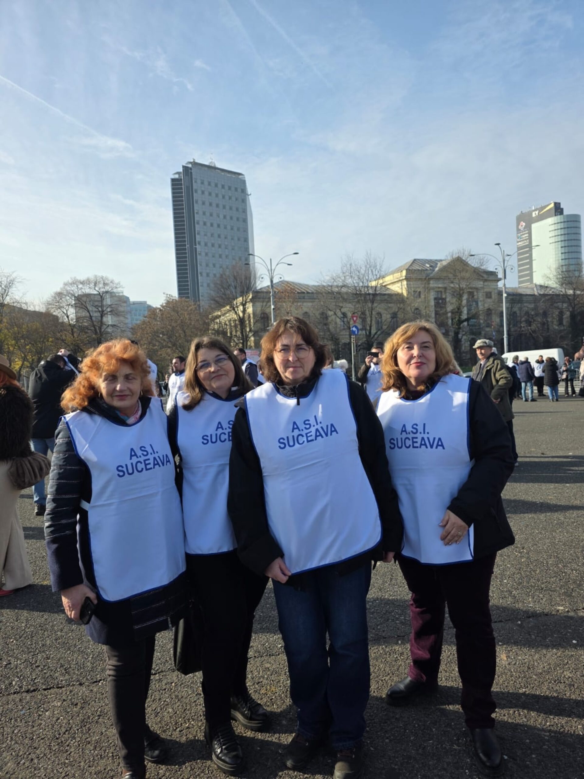 Angajați din învățământul preuniversitar sucevean au participat miercuri, 10 decembrie, la protestul din Piața Victoriei din București pentru a cere demisia ministrului Daniel David, în contextul în care acesta a făcut în ultima perioadă o serie de declarații calomnioase la adresa oamenilor școlii.