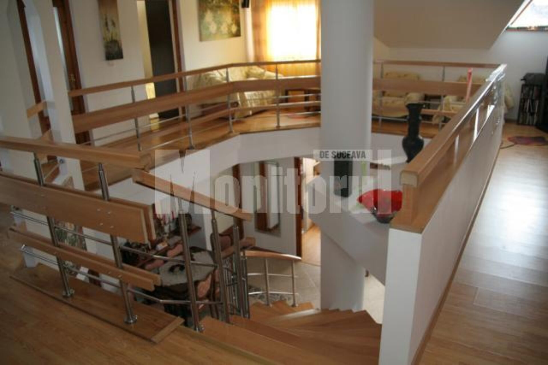Remarcabilă este și scara de piatră de la intrarea în casă, în formă de curbă, dând senzația urcării pe o scenă. Vila este construită pe principiul că din casă trebuie să se ajungă în toate spațiile, așa că tot pe o scară de stejar se ajunge în pivnița generoasă și în garaj. Grădina cu chioșcul de vară și cu statuetele din lemn și piatră întregește ansamblul.