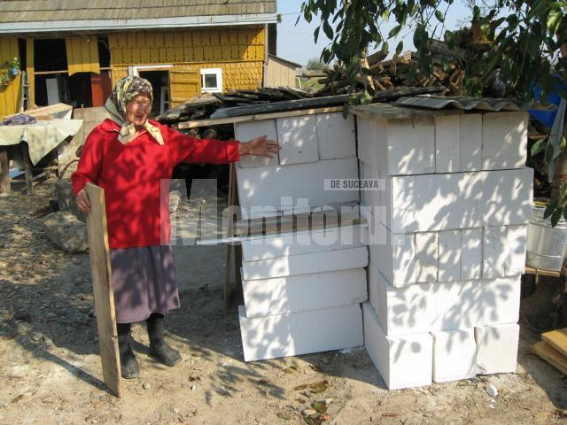 „E o bătaie de joc. Ce să fac eu cu astea?”, s-a întrebat Elena Ignătescu în timp ce se uita pierdută spre materialele de construcții stivuite în curte.