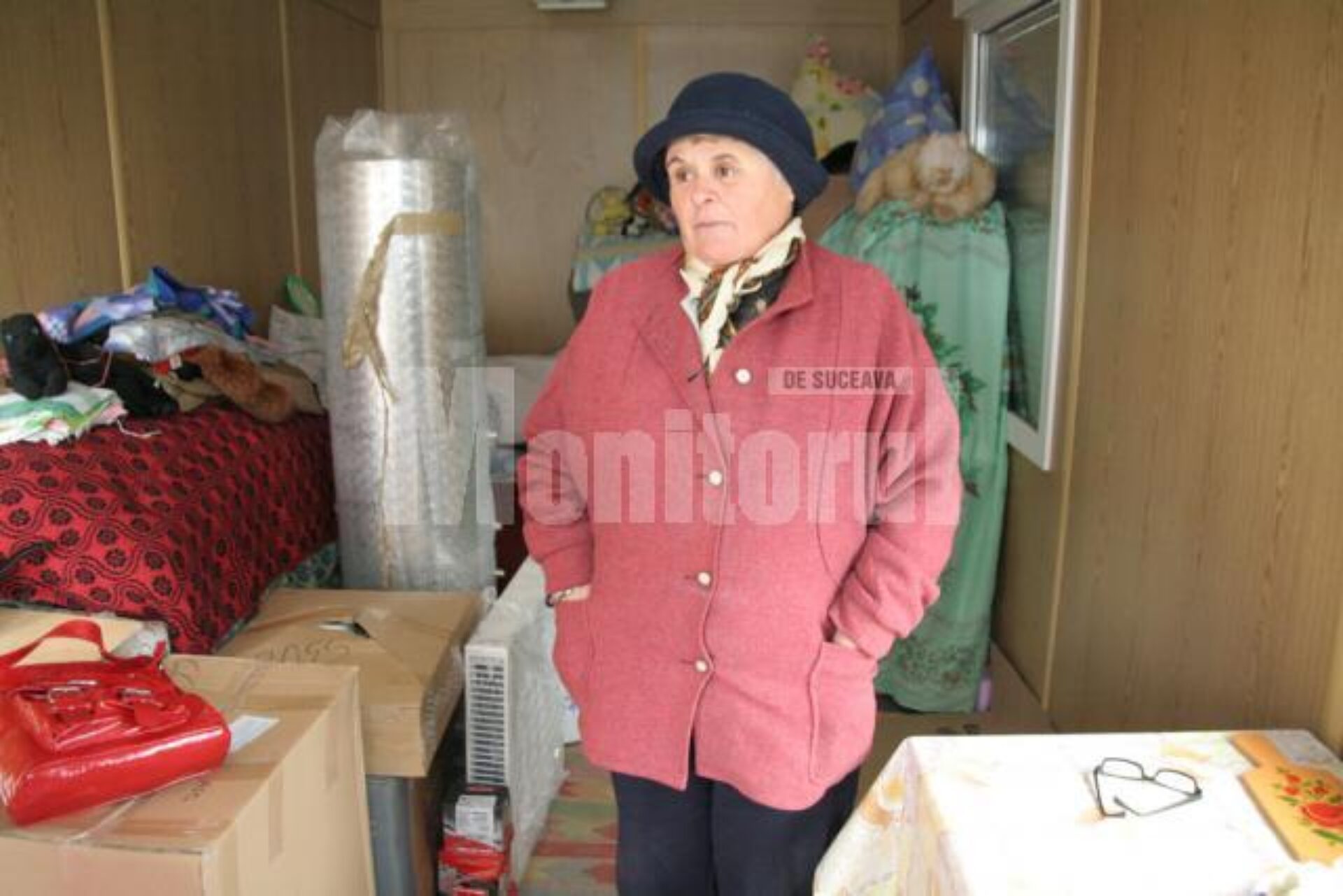„Am dat 70 de mii de lei pe casa aia bătrânească. Am dat banii pe apa Sucevei”, povestește supărată femeia, care speră ca în scurt timp să aibă un acoperiș deasupra capului.