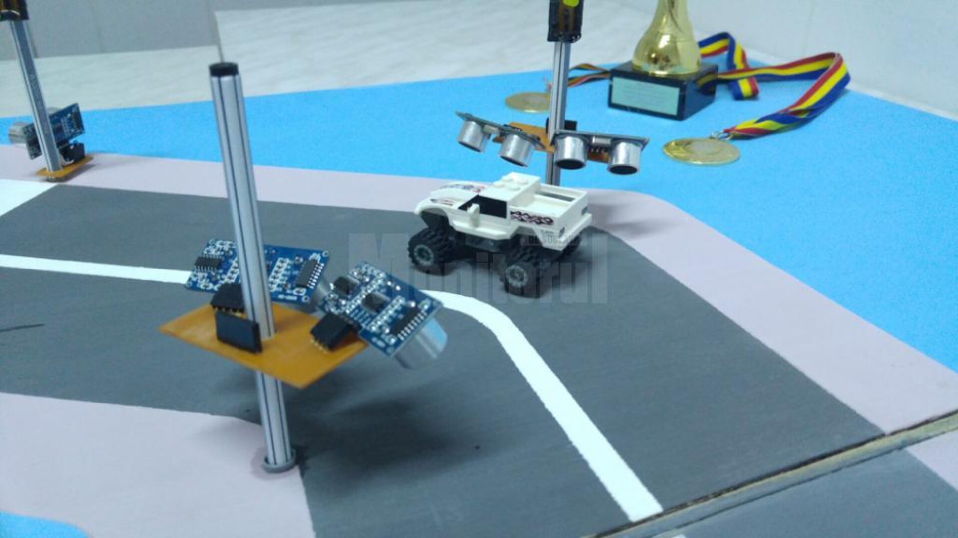 Proiectul „Sistem automat de control al traficului rutier” aparține studenților Alexandru Teleagă și Evelin Grigoriciuc, de la Facultatea de Inginerie Electrică și Știința Calculatoarelor, anul IV, în cercetarea lor tinerii fiind îndrumați de conf. dr. ing. Călin Ciufudean.