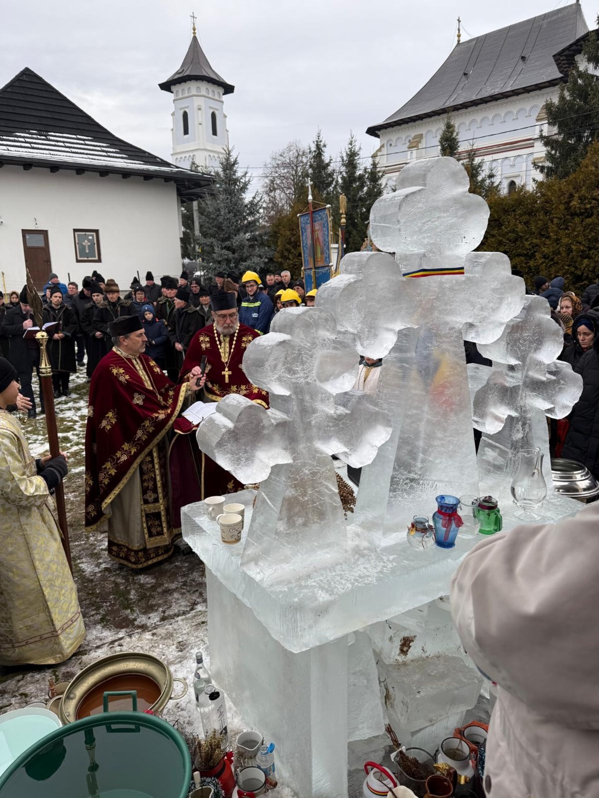 După Sfânta Liturghie de la Biserica ”Sf. Gheorghe” din centrul comunei Bosanci, credincioșii s-au adunat la slujba de sfințire a apei. În jurul altarului împodobit cu crucea de gheață ei au adus sute de vase cu apă, pentru a lua Agheasma Mare. Crucile de gheață au împodobit altarul ridicat din curtea bisericii, iar pompierii voluntari au avut și de această dată un loc aparte, de cinste în timpul slujbei.