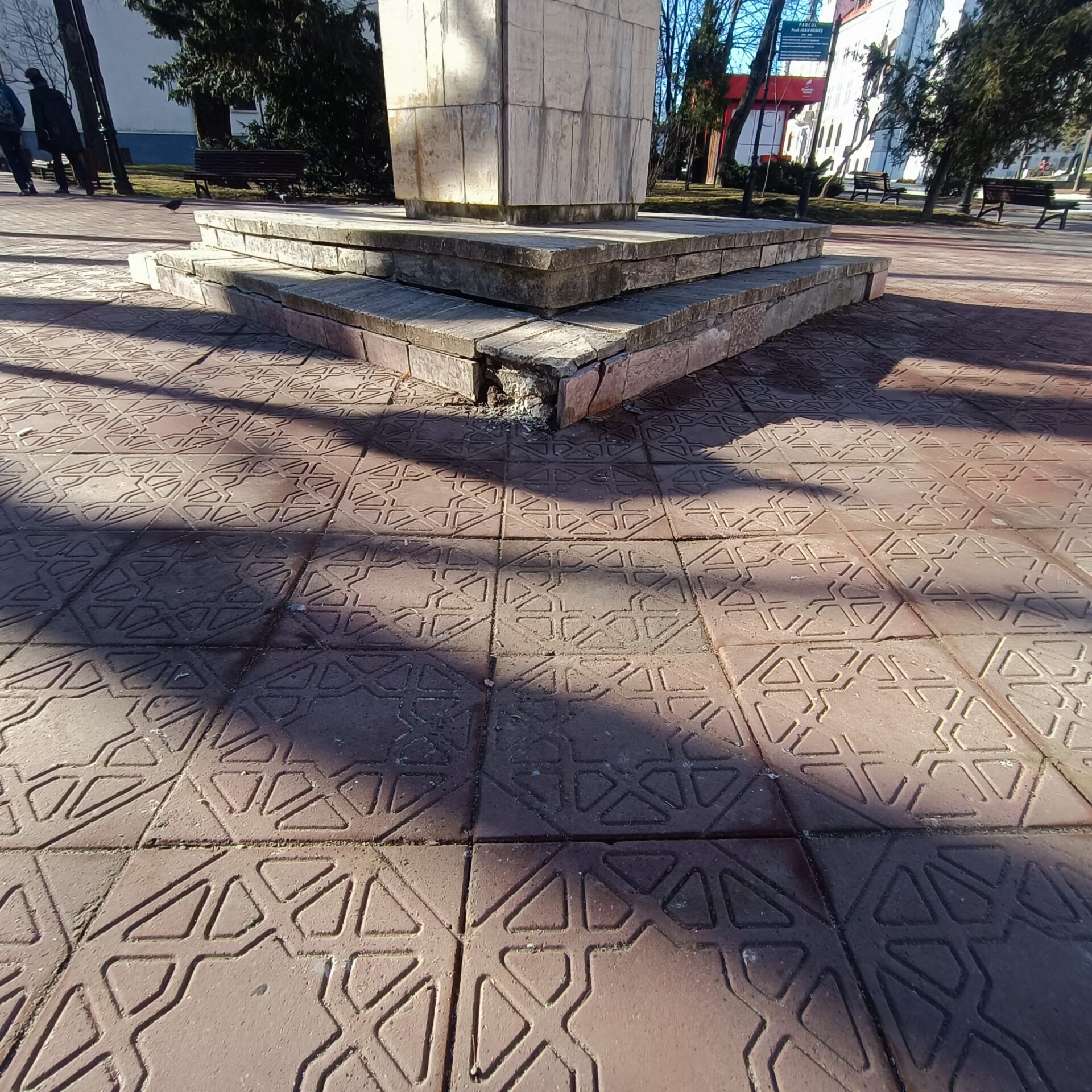 Situația a apărut recent, iar o parte din baza soclului este căzută, aspect vizibil fără a fi specialist.