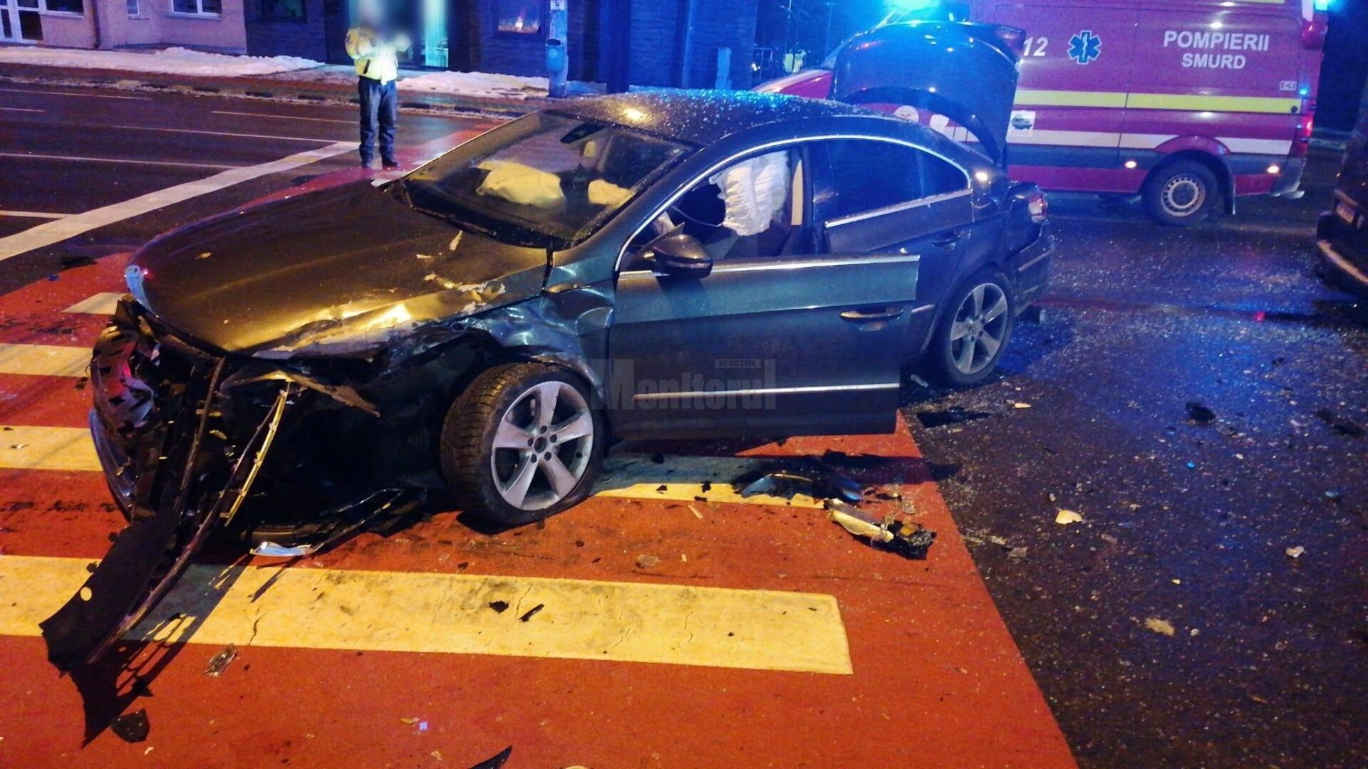 Trei persoane au fost transportate la Spitalul Județean Suceava după un accident care a avut loc la primele ore ale zilei de sâmbătă, în zona intersecției de la Biblioteca ”I.G. Sbiera” cu drumul care merge spre Cetatea de Scaun. Un autoturism și un microbuz s-au ciocnit violent, iar în sprijinul celor răniți au sosit o autospecială pentru descarcerare și două ambulanțe SMURD (TIM + B2). Din cercetări a rezultat că un autoturism marca VW Passat, condus de Gabriel Costîn, un tânăr de 22 de ani, din Dolhasca, care venea dinspre Ipotești spre Suceava, nu a acordat prioritate unui microbuz marca VW Transporter. Cea de a doua mașină era condusă de un bărbat de 54 de ani, din Șcheia, și circula regulamentar pe drumul cu prioritate. Practic, șoferul care conducea autoturismul VW Passat a intrat în intersecție, iar impactul nu a mai putut fi evitat. Cei doi șoferi au fost testați cu aparatul etilotest. Dacă în cazul șoferului de pe microbuz rezultatul a fost 0, în ceea ce îl privește pe tânărul din Dolhasca s-a constatat că acesta consumase băuturi alcoolice înainte de a pleca la drum. Mai exact, etilotestul a indicat o valoare de 0,69 mg/l alcool pur în aerul expirat. Ambii șoferi au fost răniți, plus încă o persoană din VW Passat, iar la spital s-au prelevat probe de sânge de la cele două persoane care conduceau mașinile.