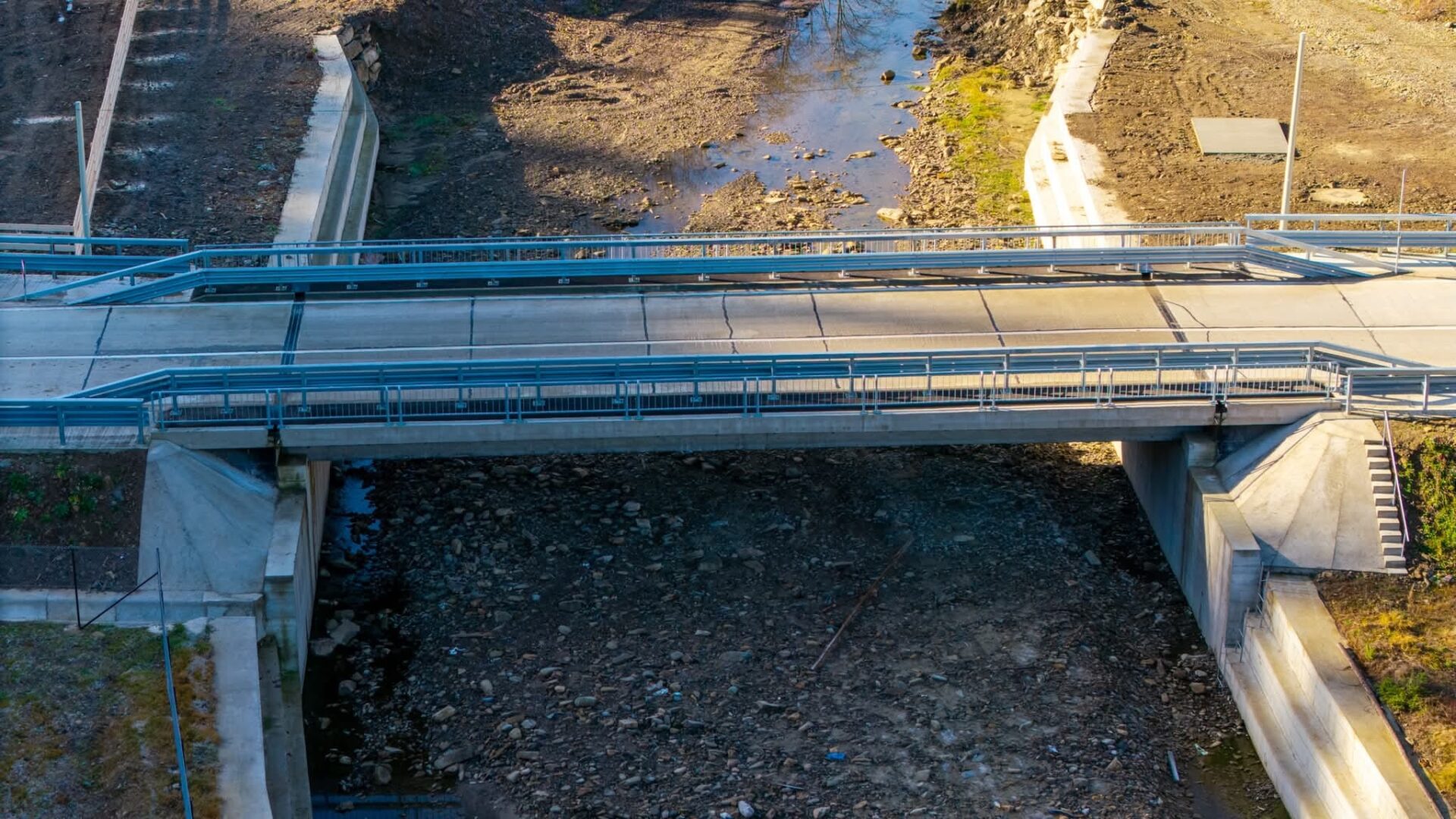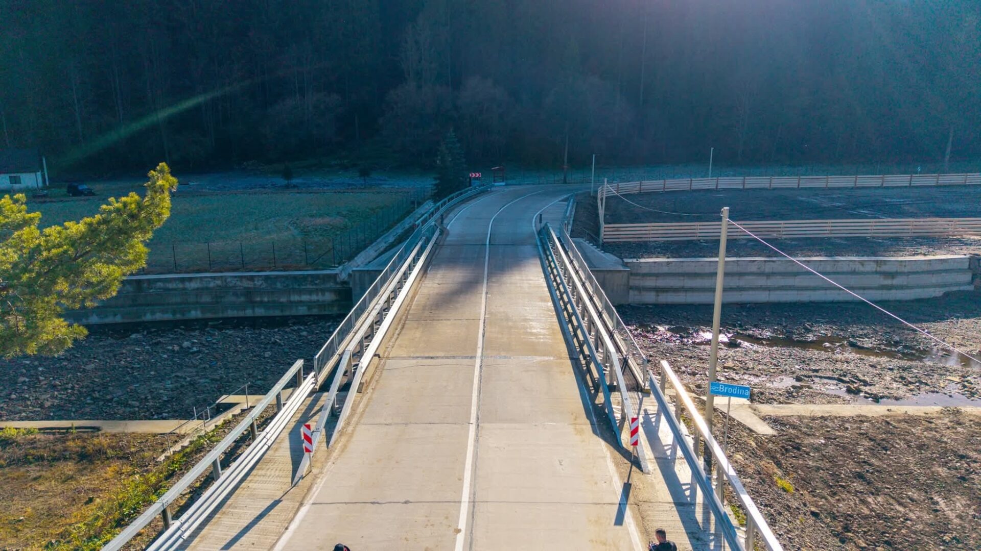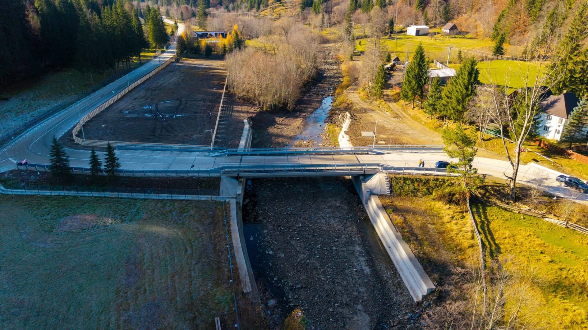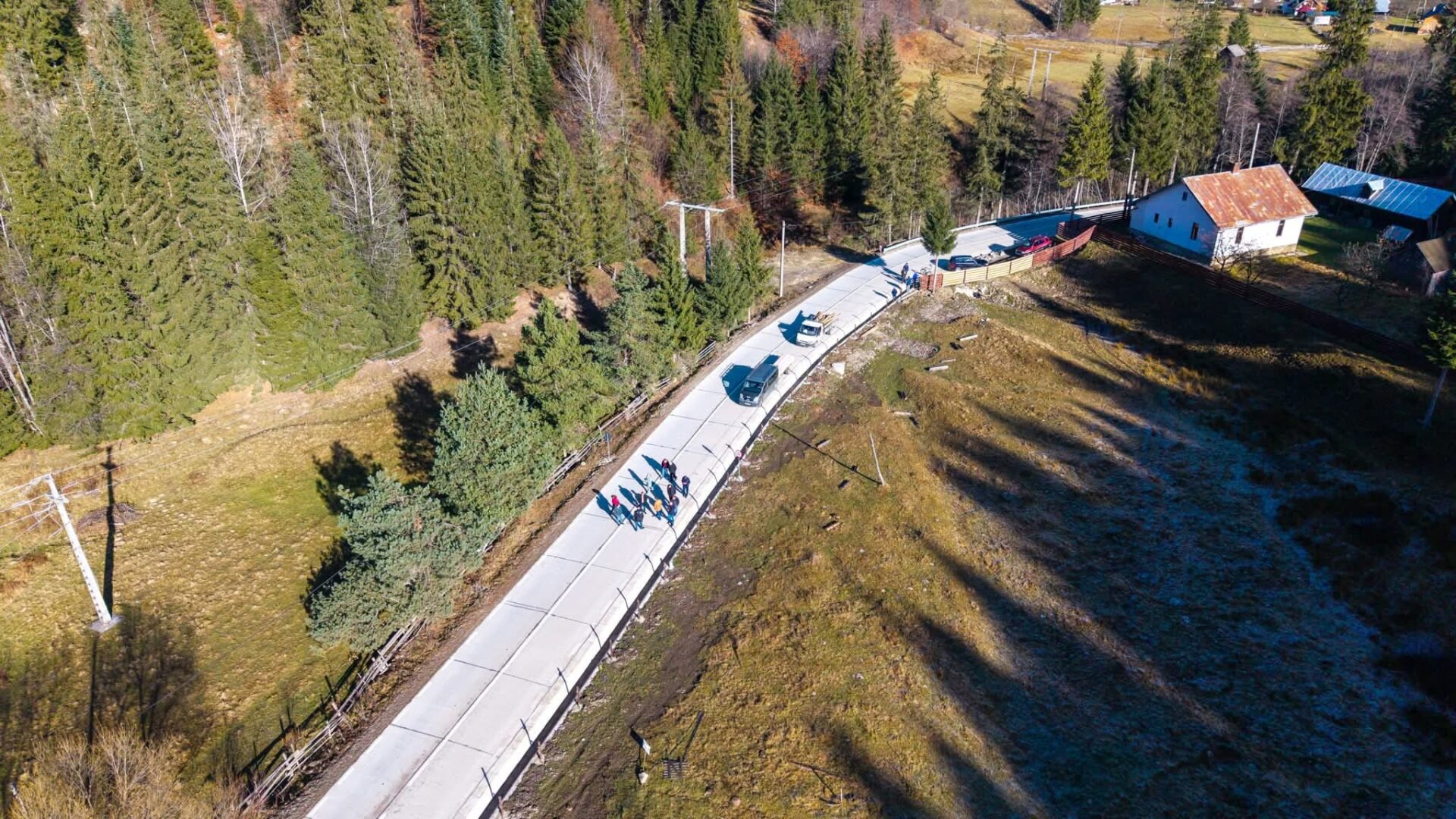 El a arătat că drumul are acum șanțuri betonate, podețe noi, zone consolidate cu gabioane și trei poduri noi peste pâraiele Negru și Brodina, unul de 18 metri și două de aproximativ 30 de metri.