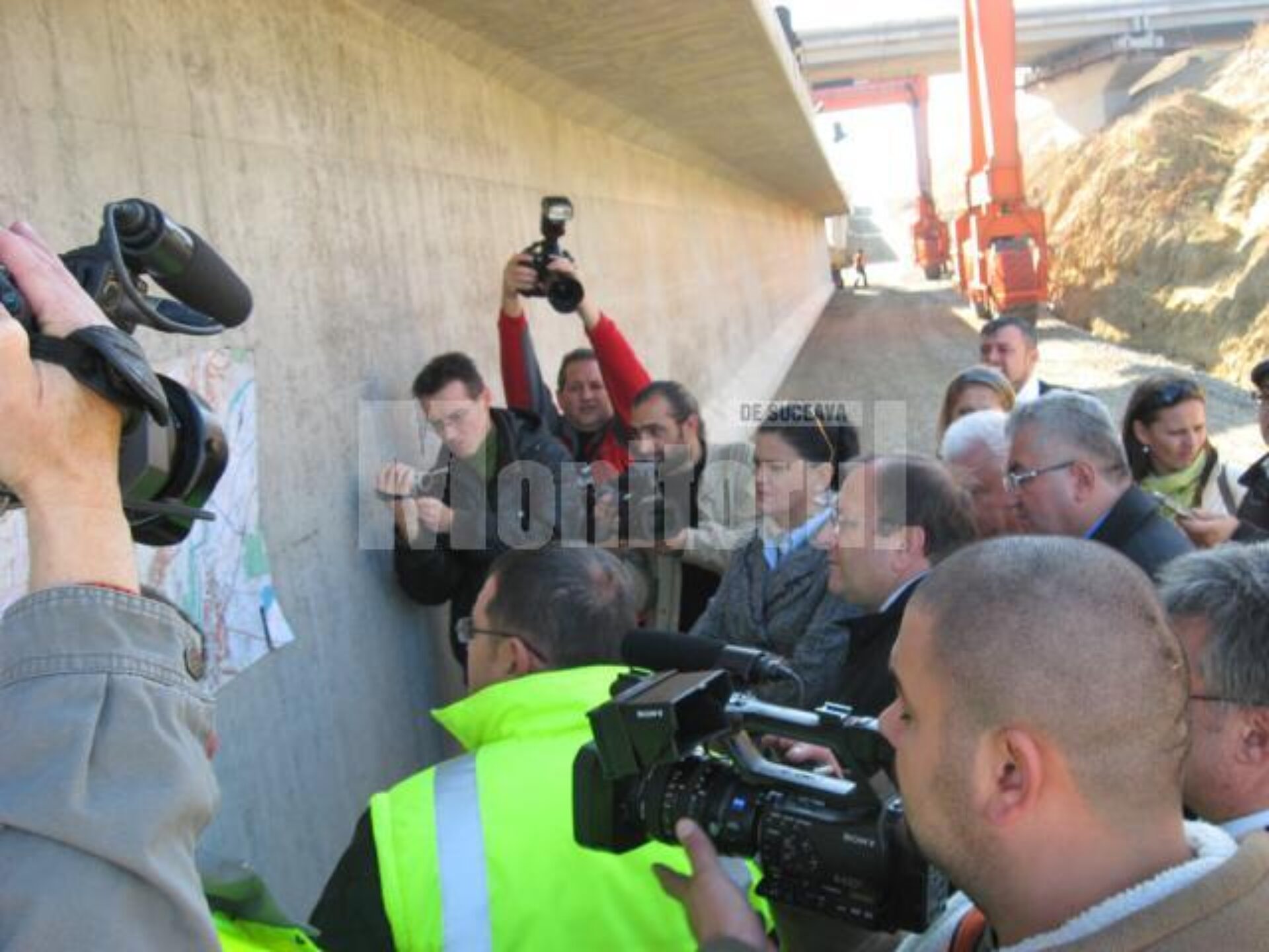 Construcția șoselei de centură a Sucevei va fi finalizată în cursul anului viitor, a anunțat, ieri, ministrul Transporturilor, Anca Boagiu. Prezentă la Suceava pentru a semna contractul de modernizare a Aeroportului „Ștefan cel Mare”, Anca Boagiu a vizitat și lucrările la șoseaua de centură a Sucevei, împreună cu președintele Consiliului Județean, Gheorghe Flutur, primarul municipiului reședință de județ, Ion Lungu, prefectul Sorin Popescu și deputatul Ioan Bălan. Pe șantier, ministrului Transporturilor i-au fost prezentate lucrările realizate până în momentul de față, constructorul afirmând, la rândul său, că investiția va fi finalizată în vara anului viitor. Astfel, directorul firmei SC CF – Grup Colas Iași, care realizează lucrările, Dumitru Hanganu, a declarat că investiția trebuie finalizată în luna iulie 2011. Hanganu a precizat că pe lângă lucrările stabilite inițial pentru construcția șoselei de centură a apărut o investiție suplimentară, respectiv consolidarea unui tronson de 1,3 kilometri în zona comunei Moara. El a spus că valoarea investiției suplimentare este de 43 de milioane de lei și va consta în consolidarea terenului și construirea unui nou viaduct, cu o lungime de 260 de metri.