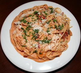 Se fierb spaghetele în apă cu sare, iar în paralel se pregătește sosul. Se călesc ciupercile, șunca, ceapa și ardeiul, apoi se stinge cu puțin vin alb și se condimentează, după care se adaugă sosul de roșii și smântâna pentru a obține un sos rose.
