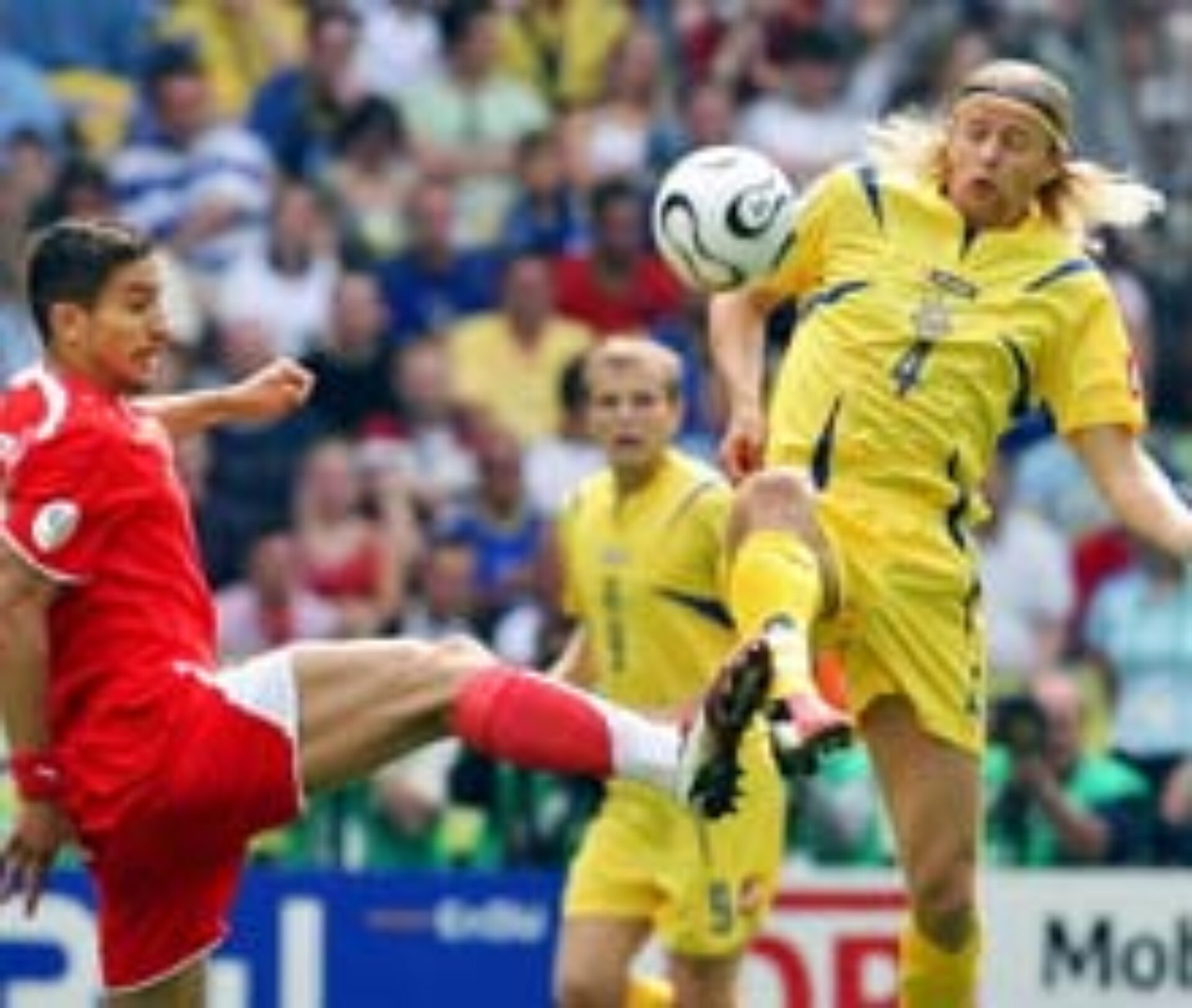 Reprezentativa Ucrainei s-a calificat în optimile de finală ale Cupei Mondiale, deși după partida inaugurală, când a fost umilită de Spania, puțini mai sperau ca trupa lui Oleg Blohin să obțină locul doi în grupa H a competiției din Germania. Fosta glorie a fotbalului sovietic Oleg Blohin a speculat din plin surprinzătorul semieșec al Tunisiei în fața Arabiei Saudite și a trecut la recuperarea timpului pierdut. După un 4-0 cu Arabia Saudită, Ucraina dădea piept cu Tunisia, venită după partida cu Spania, pe care a pierdut-o pe final. Aflat la adăpostul unui avans de două puncte față de reprezentativa tunisiană, Blohin a ales să joace prudent, cedând deliberat inițiativa, pentru ca rapizii săi atacanți să “muște” pe contraatac. Prima mare ocazie a meciului a aparținut Ucrainei în minutul 19, exact după partitura tactică gândită de selecționerul ucrainean. Chedli a executat o lovitură liberă de la aproximativ 22 de metri, balonul a ajuns la Sviderski care a declanșat un contraatac fulger, dar Timoșciuc nu l-a putut învinge pe Boumnijel. Ucraina și-a întețit atacurile la jumătatea primei reprize și în numai un minut și jumătate a avut două ocazii de a deschide scorul. La prima dintre acestea, în minutul 25, Șevcenko a șters balonul încercând să trimită din vole, iar la a doua Boumnijel a intervenit providențial în fața lui Voronin, care se pregătea să lovească balonul cu capul de la 7-8 metri de poarta tunisienilor. Același Șevcenko putea rezolva ecuația calificării, dar noul atacant a lui Chelsea s-a complicat inutil, preferând driblingul în locul unui șut la poarta lui Boumnijel. În prelungirile primei reprize, selecționerul Tunisiei, Roger Lemerre, a primit lovitura de acolo de unde se aștepta mai puțin. Jaziri a comis un fault stupid la aproximativ 38 de metri de propriile buturi, iar centralul Amarilla i-a arătat al doilea galben și, implicit, pe cel roșu, fotbalistul tunisian lăsându-și echipa în inferioritate numerică. Blohin nu a schimbat registrul tactic în al doilea mitan, deși avea avantajul omului în plus, și a preferat să conserve rezultatul de pe tabelă care asigura biletele pentru optimi. De aici a rezultat o luptă oarbă și plicticoasă la centrul terenului, prelungită de pasele înapoi ale ucrainenilor care au fost taxați imediat cu huiduieli venite din tribune. În minutul 65, la una din rarele acțiuni de poartă, glonțul a șuierat pe la urechile lui Blohin. Rusol a faultat în marginea careului de 16 m, iar șutul lui Ayari a fost deviat în corner de Voronin. Cu 20 de minute înainte de final, Șevcenko a pătruns în careu și a reușit să-l impresioneze pe arbitrul Carlos Amarilla, care a dictat lovitură de la 11 metri, transformată de fostul atacant de la AC Milan. La 0-1, Lemerre a forțat pe cartea atacului, prin introducerea lui Santos, aflat la primul meci la Cupa Mondială, și a lui Ben Saada. Degeaba. Era prea târziu. Ocaziile din finalul partidei ale lui Trabelsi și Santos nu au mai contat decât la capitolul statistică. Pentru Tunisia, drumul spre optimi a fost blocat în prima rundă, la acea remiză cu Arabia Saudită.