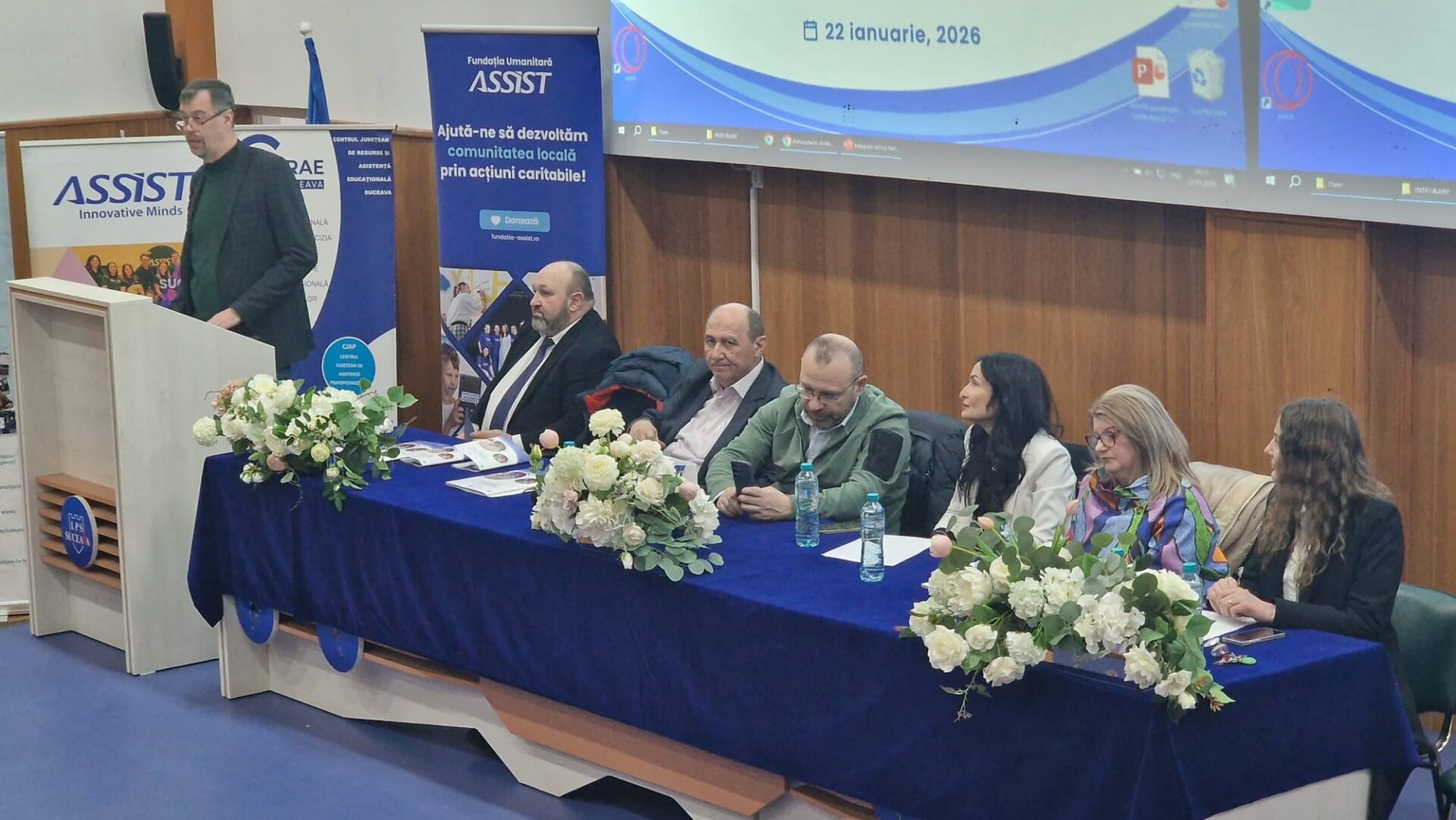 Prezidiul evenimentului a mai fost completat de prof. consilier școlar Maria Adriana Nichitean, director CJRAE Suceava, conf. univ. dr. Aurora-Adina Colomeischi, decan, Facultatea de Psihologie și Științe ale Educației, Mihaela Chistol, membru al Consiliului Director al Fundației Umanitare ASSIST și prof. Doina-Gabriela Șlincu, profesor metodist CCD „George Tofan” Suceava, coordonator program.