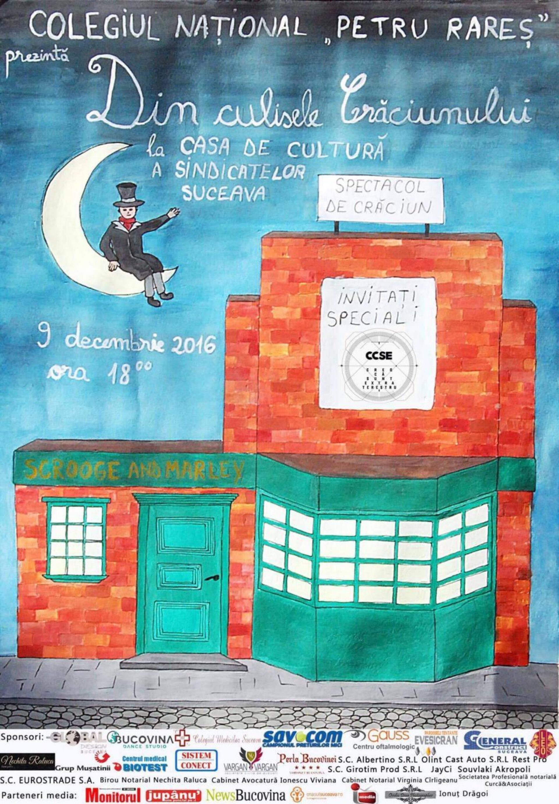 Colegiul Național „Petru Rareș” Suceava organizează vineri, de la ora 18.00, „Spectacol de Crăciun”, eveniment caritabil care va reuni o serie de momente artistice susținute de elevii instituției. Manifestarea va fi găzduită de Casa de Cultură a Sindicatelor și va fi transmisă în direct pe pagina online a cotidianului Monitorul de Suceava, www.monitorulsv.ro.