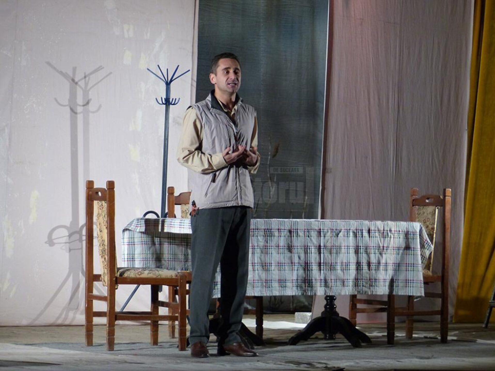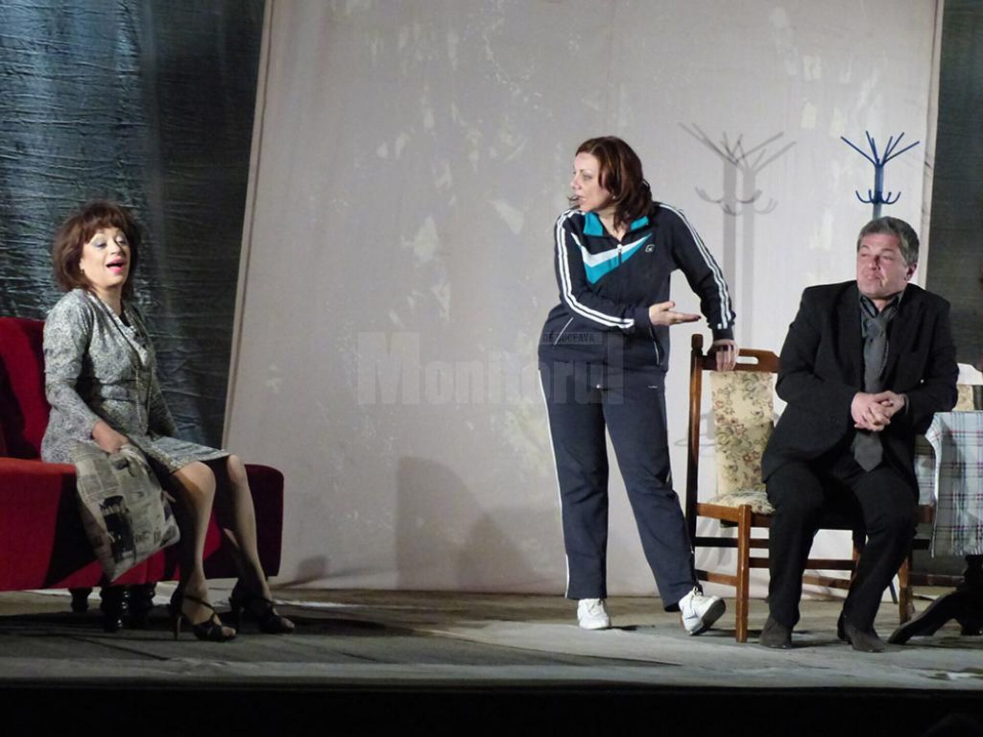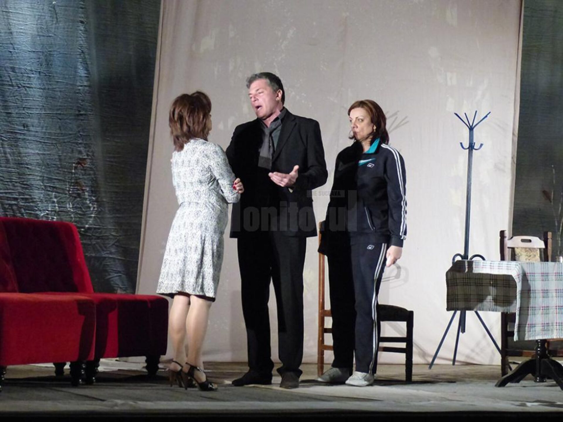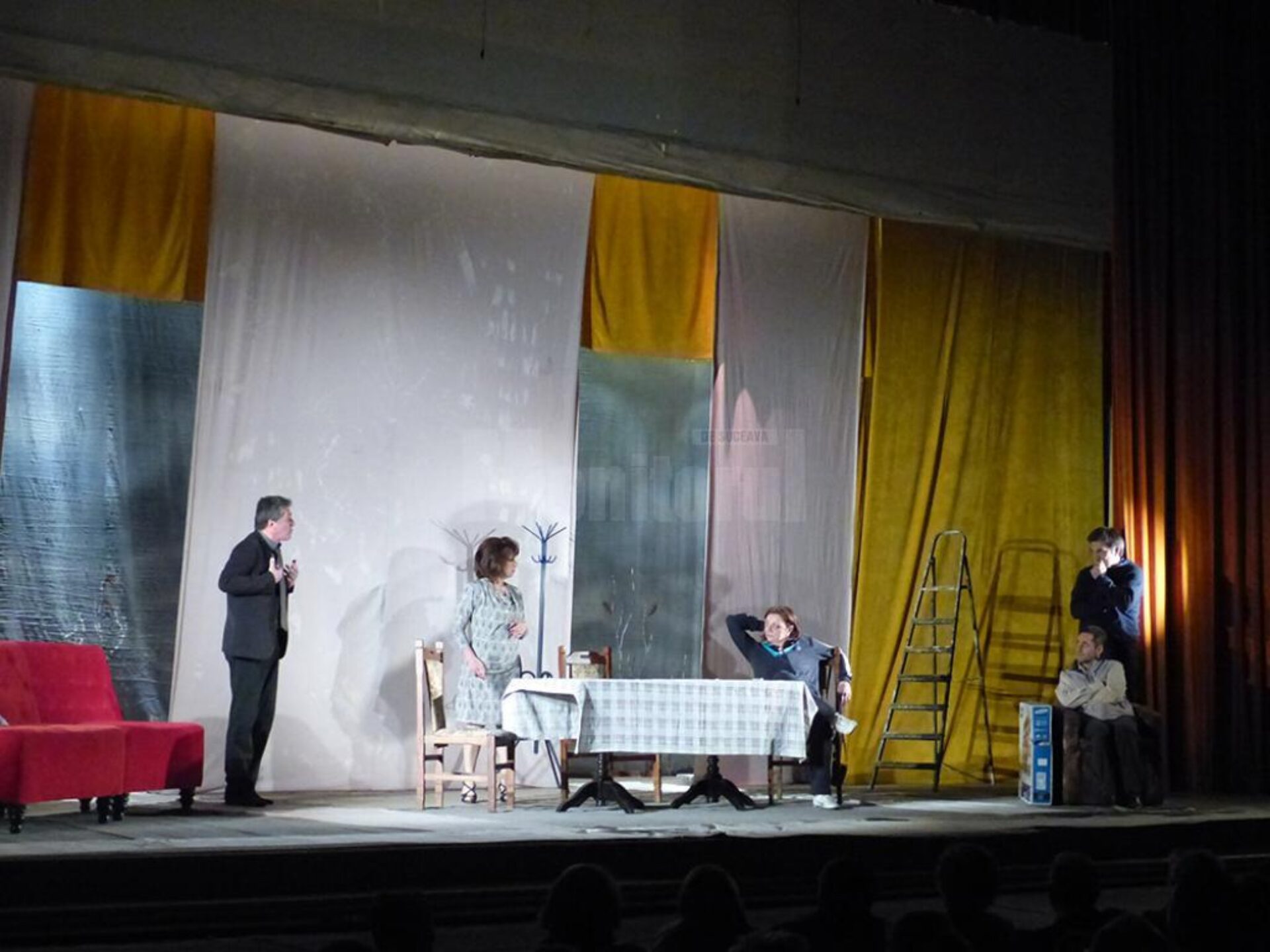 Spectacolul de teatru „Mă mut sau nu mă mut? Aceasta e-ntrebarea!”, ce s-a jucat joi seară, pe scena Casei de Cultură a Sindicatelor Suceava, a stârnit hohote de râs și îndelungi aplauze. Publicul, câteva sute de spectatori, a ales să petreacă aproape două ore în compania unei pleiade de actori care a jucat pe scenă și a oferit oexperiență amuzantă, o poveste sinceră, desprinsă din viața unei familii normale și transpusă în lumina reflectoarelor. Protagoniștii piesei au fost actorii Adriana Trandafir, Carmen Tănase, Adrian Păduraru, Andreas Petrescu, Gabriel Fătu, Anca Dinicu, Oana Pușcatu. Echipa care a conceput și a pus în scenă supercomediile “Mă mut la mama” și “Mă mut la tata” duce povestea mai departe cu spectacolul “Mă mut sau nu mă mut? Aceasta e-ntrebarea!”. Îndrăgiții actori i-au invitat pe suceveni la o trilogie de comedie, în regia lui Gelu Colceag, „opoveste cu situații de un comic imposibil, în care fiecare se regăsește sau în care își recunoaște sora, fratele, colegul de birou, prietenul ori prietena.” Costumele au fost realizate de Eliza Munteanu, iar regia tehnică a fost asigurată de Dan Ionescu.