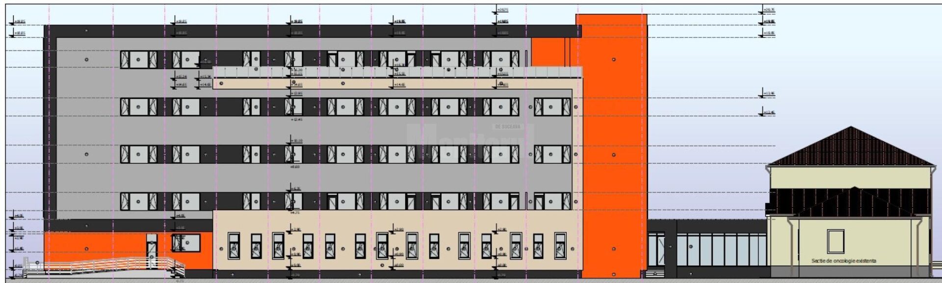 Clădirea va avea 4 etaje și va fi legată de actuala secție printr-un tunel de sticlă, similar cu cel care face legătura dintre Ambulatoriu și Unitatea de Primiri Urgențe.