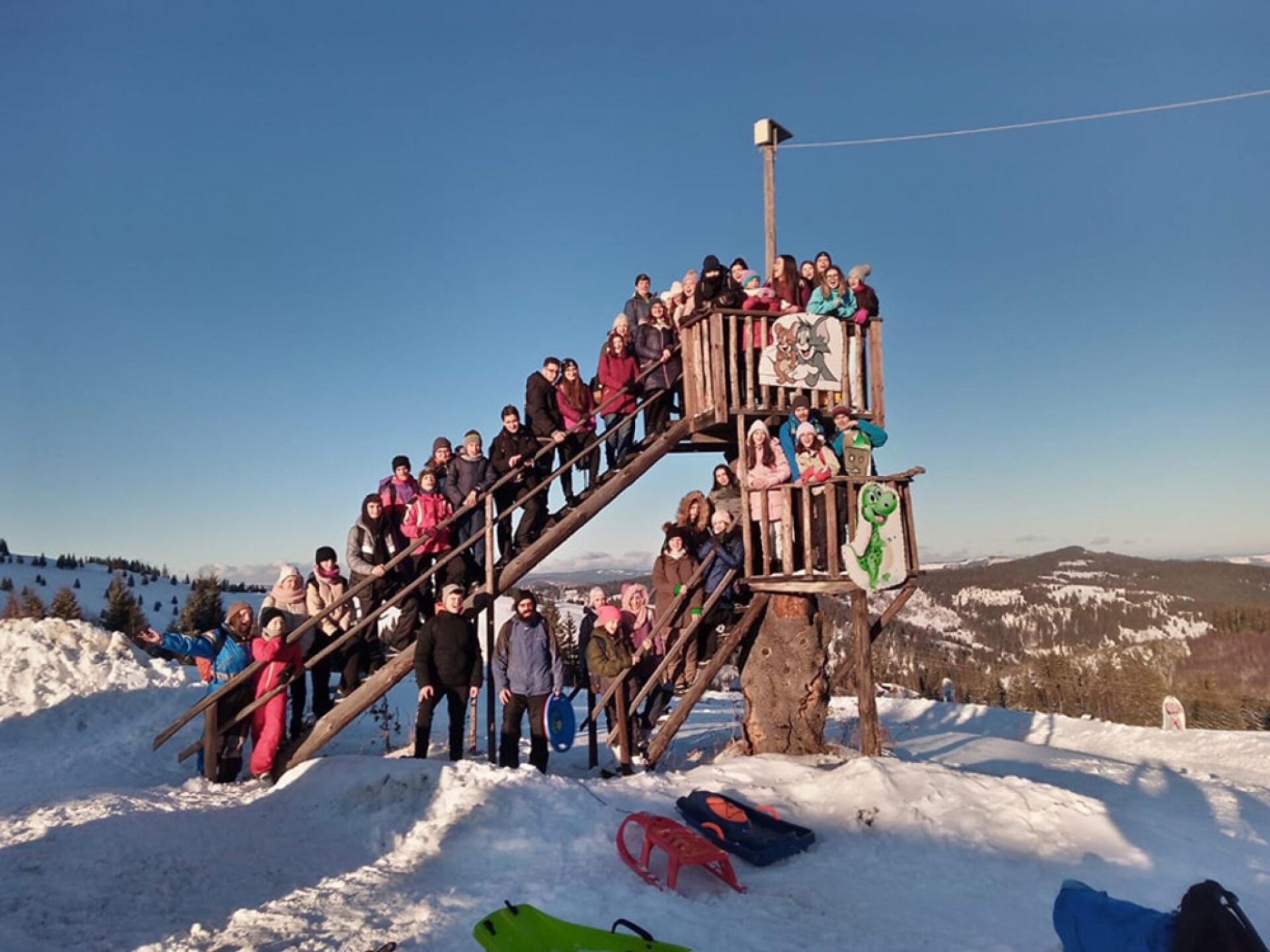 Sport și distracție la munte pe pârtie pentru tinerii ATOS: sanie, tubbing și ski