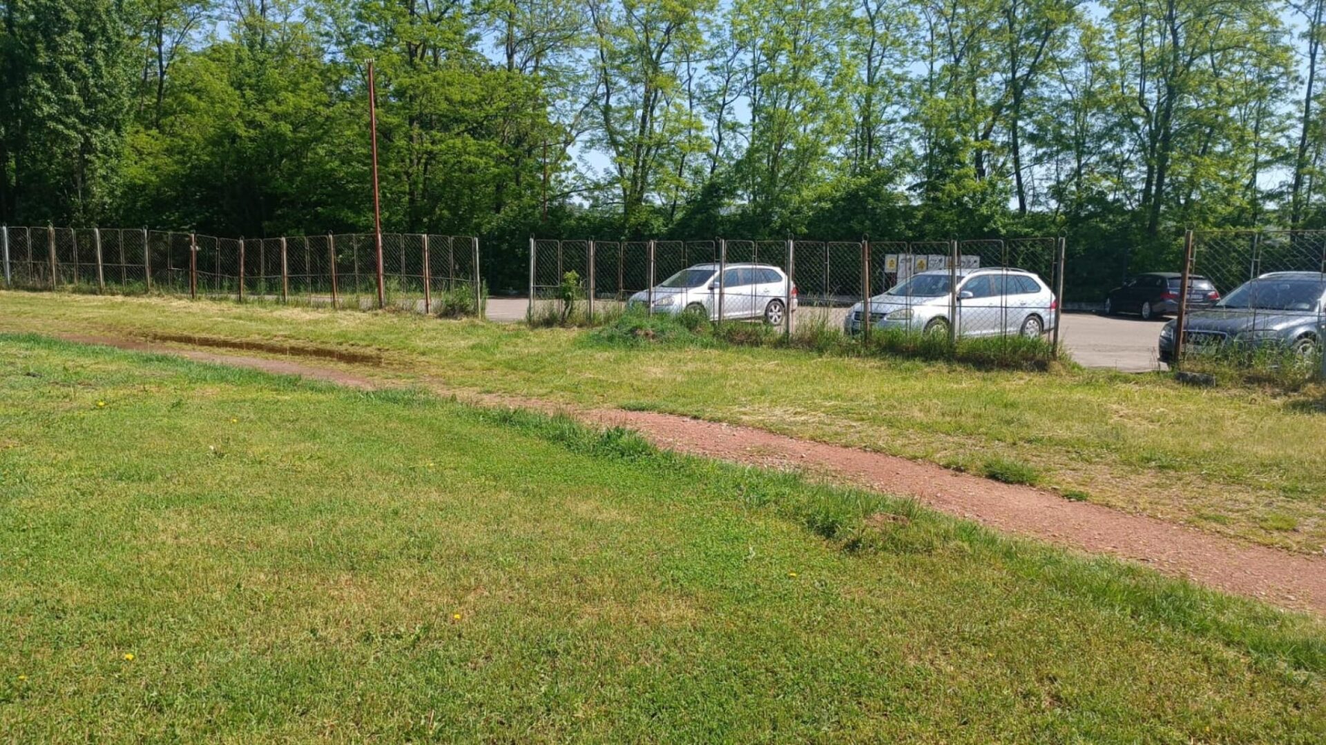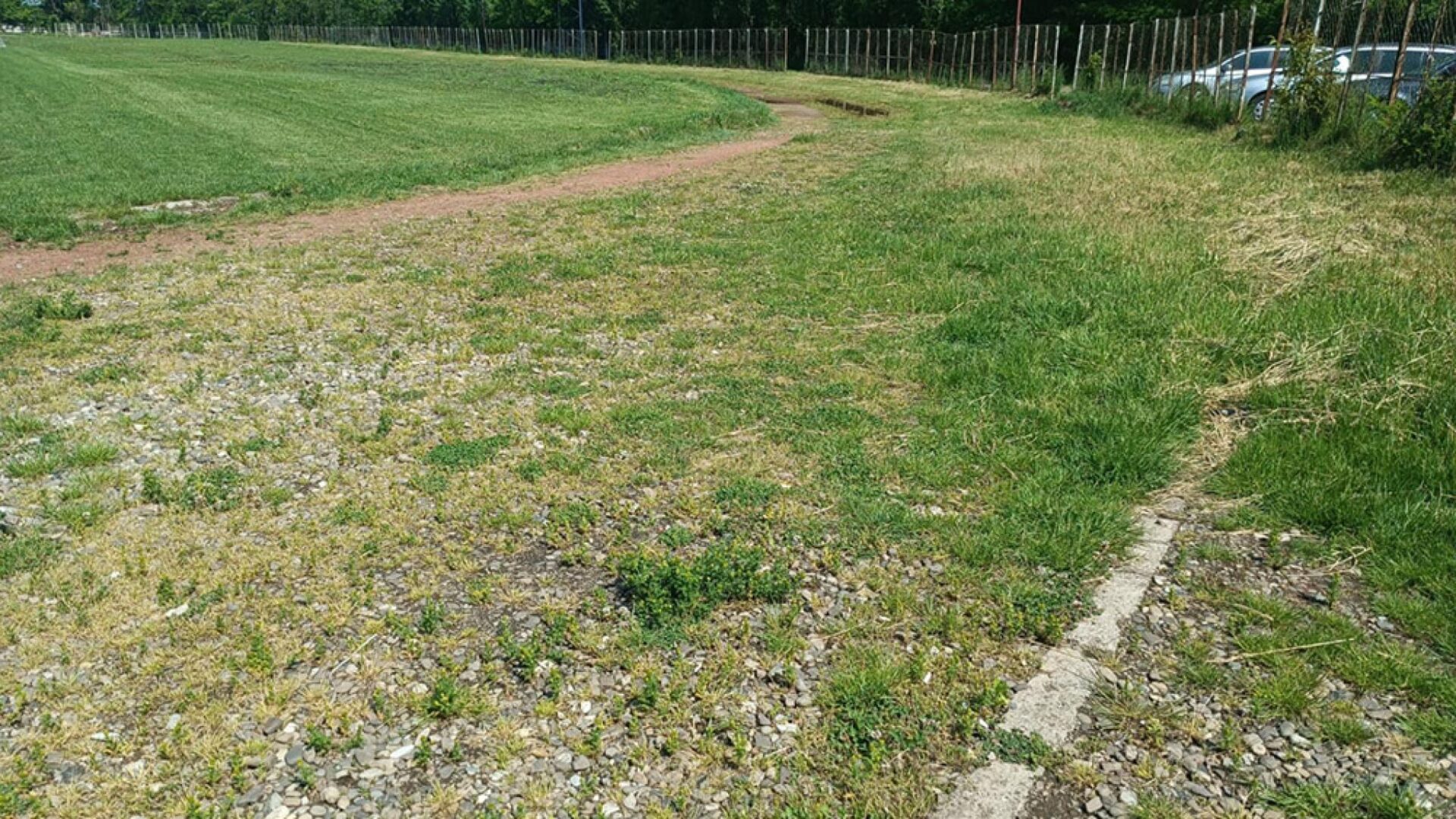 Gardul împrejmuitor are lipsă plase din loc în loc, pista de alergare se poate zări cu greu din iarbă, iar tabela de marcaj pare adusă dintr-o fabrică ajunsă în faliment.