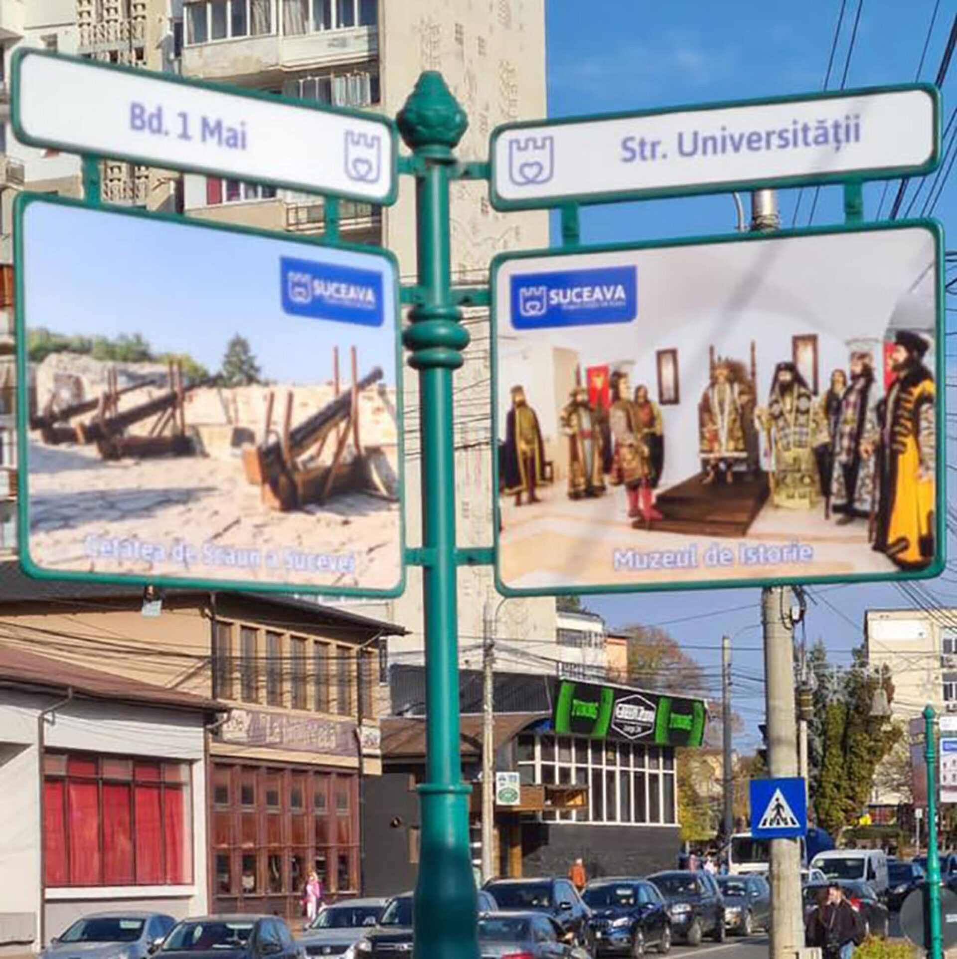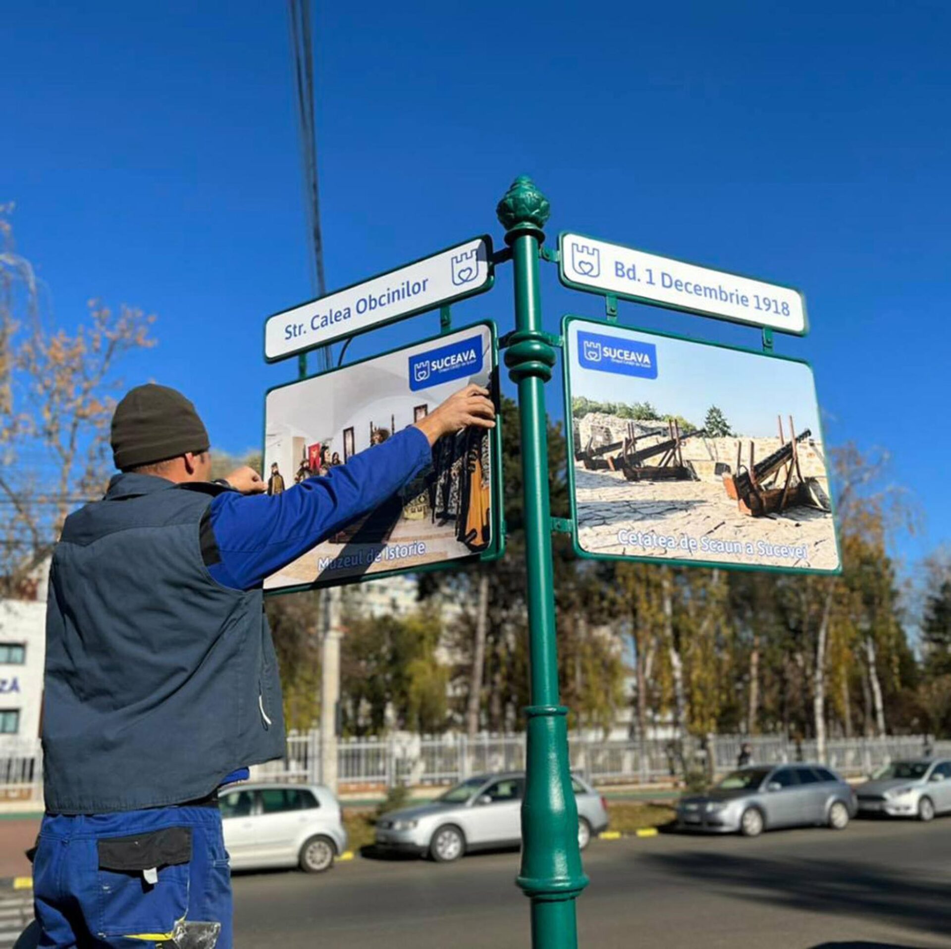 „Stâlpii informativi din intersecțiile importante ale orașului au fost împrospătați cu imagini ale principalelor obiective turistice din Suceava, împreună cu denumirea străzilor”, a spus Lucian Harșovschi, care coordonează atât activitatea biroului „Străzi” din cadrul Primăriei, cât și pe cea a Direcției de „Turism”.