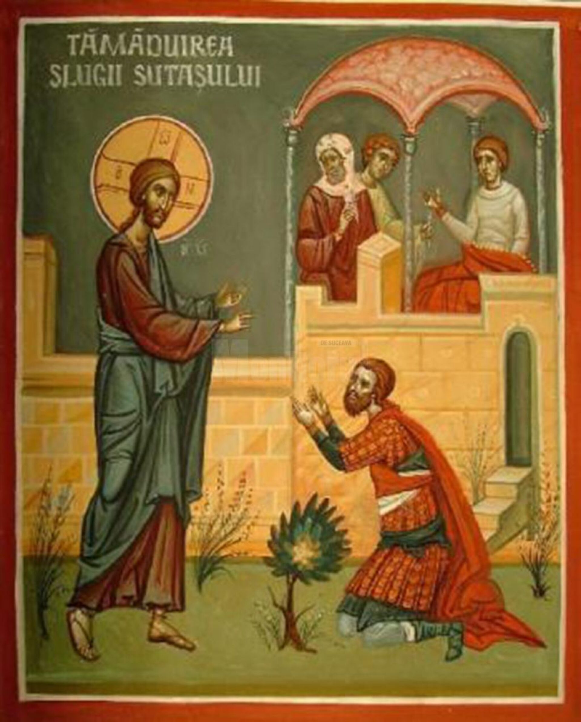 „În vremea aceea, pe când Iisus intra în Capernaum, s-a apropiat de El un sutaș, rugându-L și zicând: Doamne, sluga mea zace în casă, slăbănog, chinuindu-se cumplit. Și i-a zis Iisus: Venind, îl voi vindeca. Dar sutașul, răspunzând, I-a zis: Doamne, nu sunt vrednic să intri sub acoperișul meu, ci numai spune un cuvânt și se va vindeca sluga mea. Că și eu sunt om sub stăpânirea altora și am sub mine ostași și-i spun acestuia: Du-te, și se duce; și celuilalt: Vino, și vine; și slugii mele: Fă aceasta, și face. Auzind, Iisus S-a minunat și a zis celor ce veneau după El: Adevărat grăiesc vouă: Nici în Israel n-am găsit atâta credință. Și zic vouă că mulți de la răsărit și de la apus vor veni și vor sta la masă cu Avraam, cu Isaac și cu Iacov în Împărăția cerurilor. Iar fiii Împărăției vor fi aruncați în întunericul cel mai din afară; acolo va fi plângerea și scrâșnirea dinților. Și a zis Iisus sutașului: Du-te, fie ție după cum ai crezut. Și s-a însănătoșit sluga lui în ceasul acela.” (Matei 8, 5-13)
