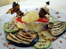 Mușchiul de vită, cotletul și pieptul de pui se bat și se pun pe grătar. Legumele, vinetele, cartofii li dovleceii se pun pe grătar. Ciupercile și ardeiul gras se trag în tigaie în sos worchester. Se așează pe farfurie în straturi începând cu mușchiul de vită, gorgonzola, cotlet, cașcaval iar legumele trase în sos se pun pe bețișoare.
