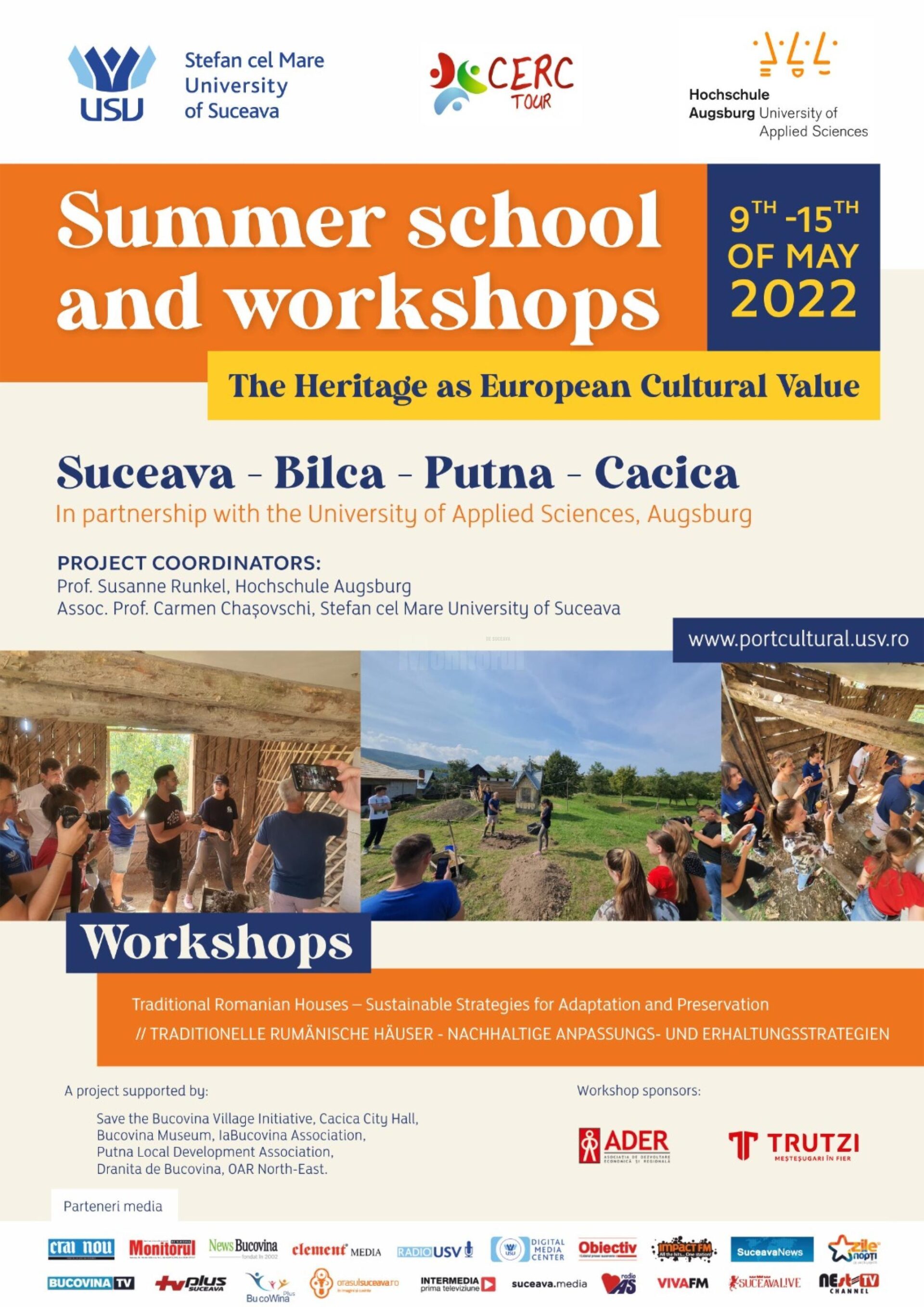 Întreaga susținere aparține Universității „Ștefan cel Mare” Suceava, în continuarea proiectului PORT Cultural – PORTofoliu de instrumente inovative pentru dezvoltarea durabilă a comunităților rurale cu potențial turistic, prin valorificarea elementelor de patrimoniu și identitate culturală, proiect finanțat de UEFISCDI și implementat în perioada 2018-2021 (www.portcultural.usv.ro). Prin eforturile organizatorice, ediția școlii de vară din acest an își propune să răspundă unor întrebări precum: Cum pot să păstrez vechea casă tradițională și să o adaptez la nevoile actuale?, Ce tip de materiale și tehnici ar trebui să folosim pentru renovare și izolare, care să fie compatibile cu vechile materiale tradiționale de construcție (lemn și lut) și cu un mod sustenabil de construcție?, întrebări care pot aduce la suprafață probleme legate de peisajul cultural din sud-estul Europei, în mare parte reprezentând destinații turistice, peisaj care a suferit și suferă, în continuare, transformări vizibile. Dorința de modernizare a locuințelor și a modului de viață, în general, a devenit o problemă de ordin cultural, reflectată în oglinda unei societăți care se îndreaptă vertiginos către uniformizare.
