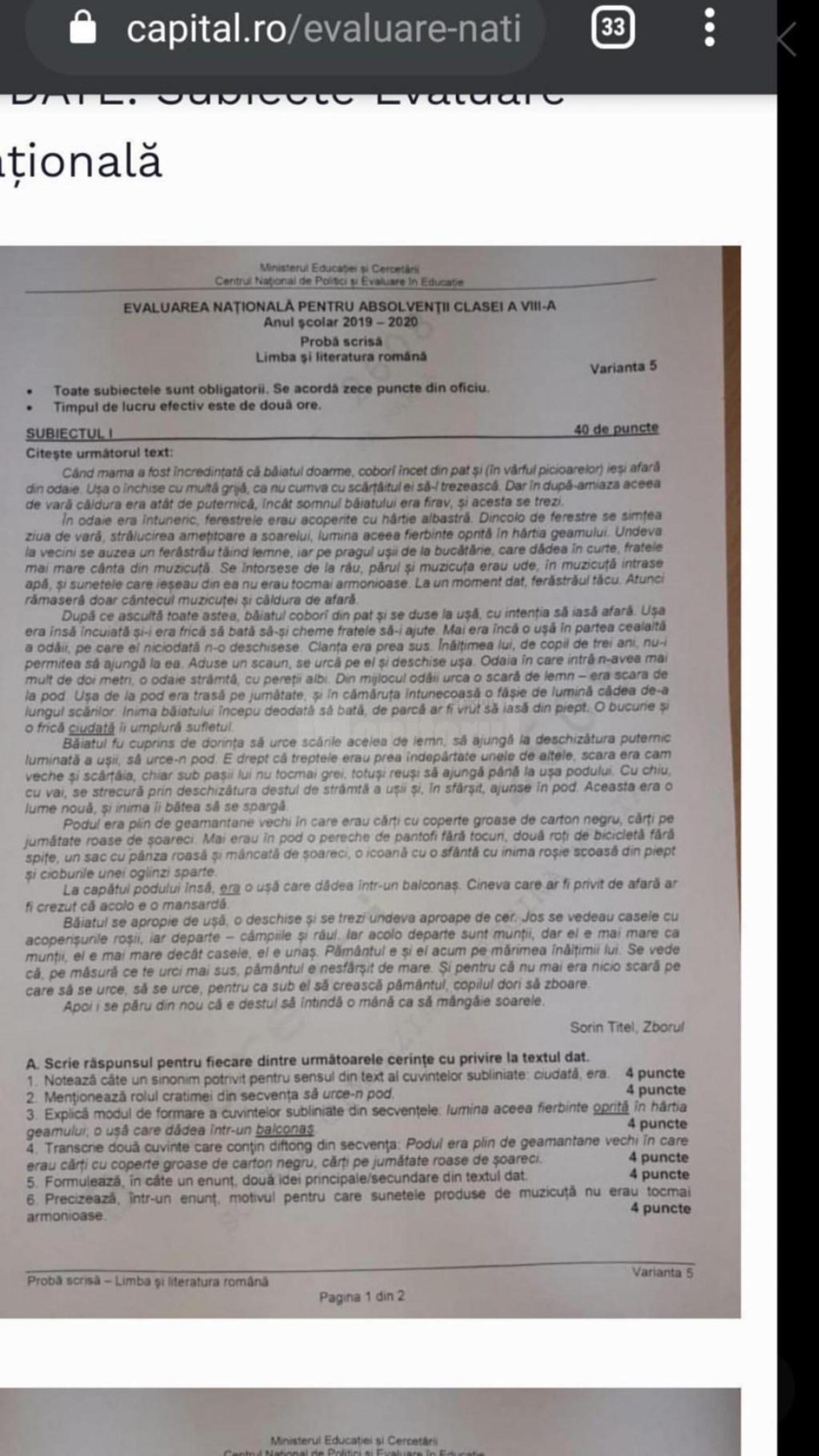 5. Formulează, în câte un enunț, două idei principale/secundare din textul dat.