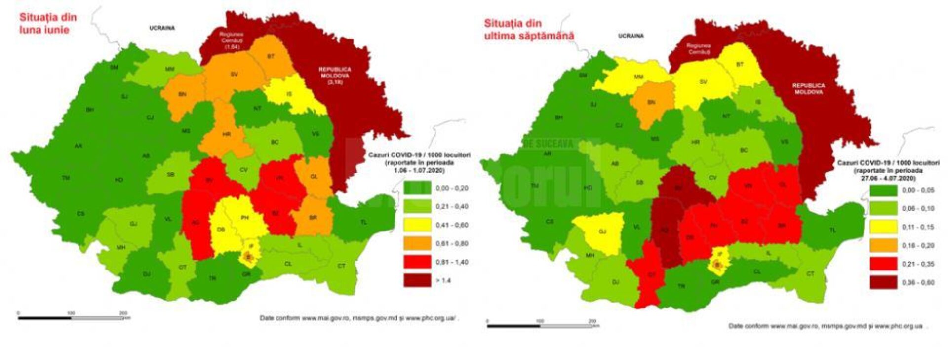 La nivel regional transfrontalier, evoluția continuă să fie una nefavorabilă, regiunea Cernăuți având 164 cazuri noi înregistrate la suta de mii de locuitori în luna iunie, valoare superioară oricărui județ din România, respectiv 38 cazuri la suta de mii de locuitori în ultima săptămână. Pentru întreaga perioadă a pandemiei, regiunea Cernăuți cumulează 4.972 persoane diagnosticate cu COVID-19, valoare superioară județului Suceava, ce a înregistrat 4.078 de cazuri. Subliniem faptul că regiunea Cernăuți este cea mai afectată regiune din Ucraina, raportând numărul de cazuri la populația regiunilor. Situația din Ucraina a fost obținută prin prelucrarea datelor oficiale publicate de www.phc.org.ua.