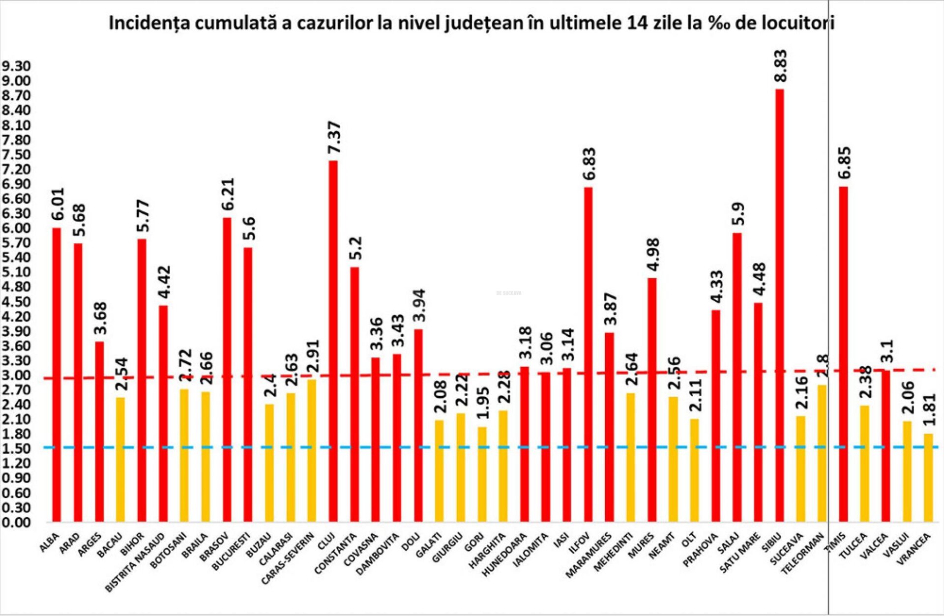 În acest context, coeficientul de infectare cu COVID – 19 la nivelul județului Suceava se menține la un nivel scăzut față de restul țării, de 2,16 la mia de locuitori. Comparativ, sunt județe precum Sibiu, Cluj, Timiș, Brașov sau Alba care au depășit coeficientul de 6 cazuri la mia de locuitori.