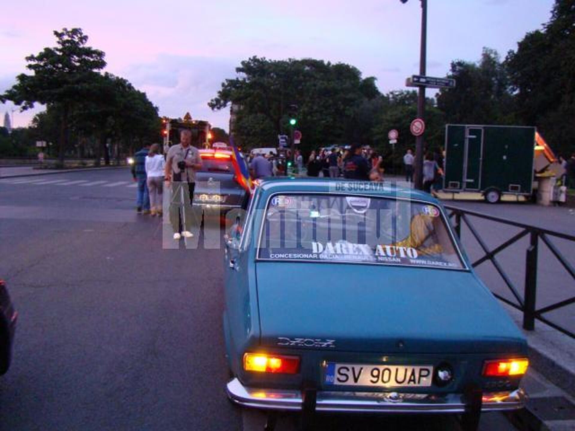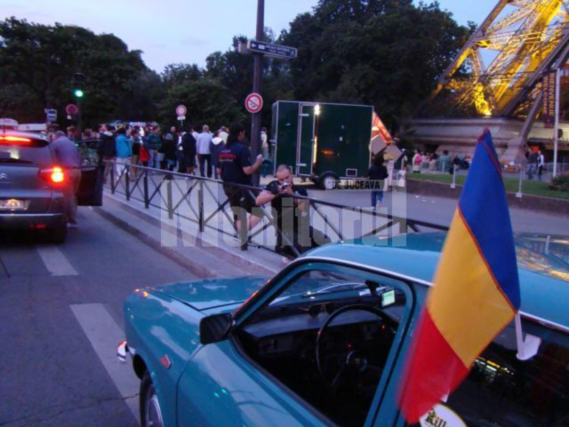 “Steagul României a fost arborat pentru traversarea capitalei Franței cu Dacia. Am fost surprinși plăcut de reacția călduroasă a parizienilor la vederea mașinii, mulți aplaudând la trecerea noastră”.
