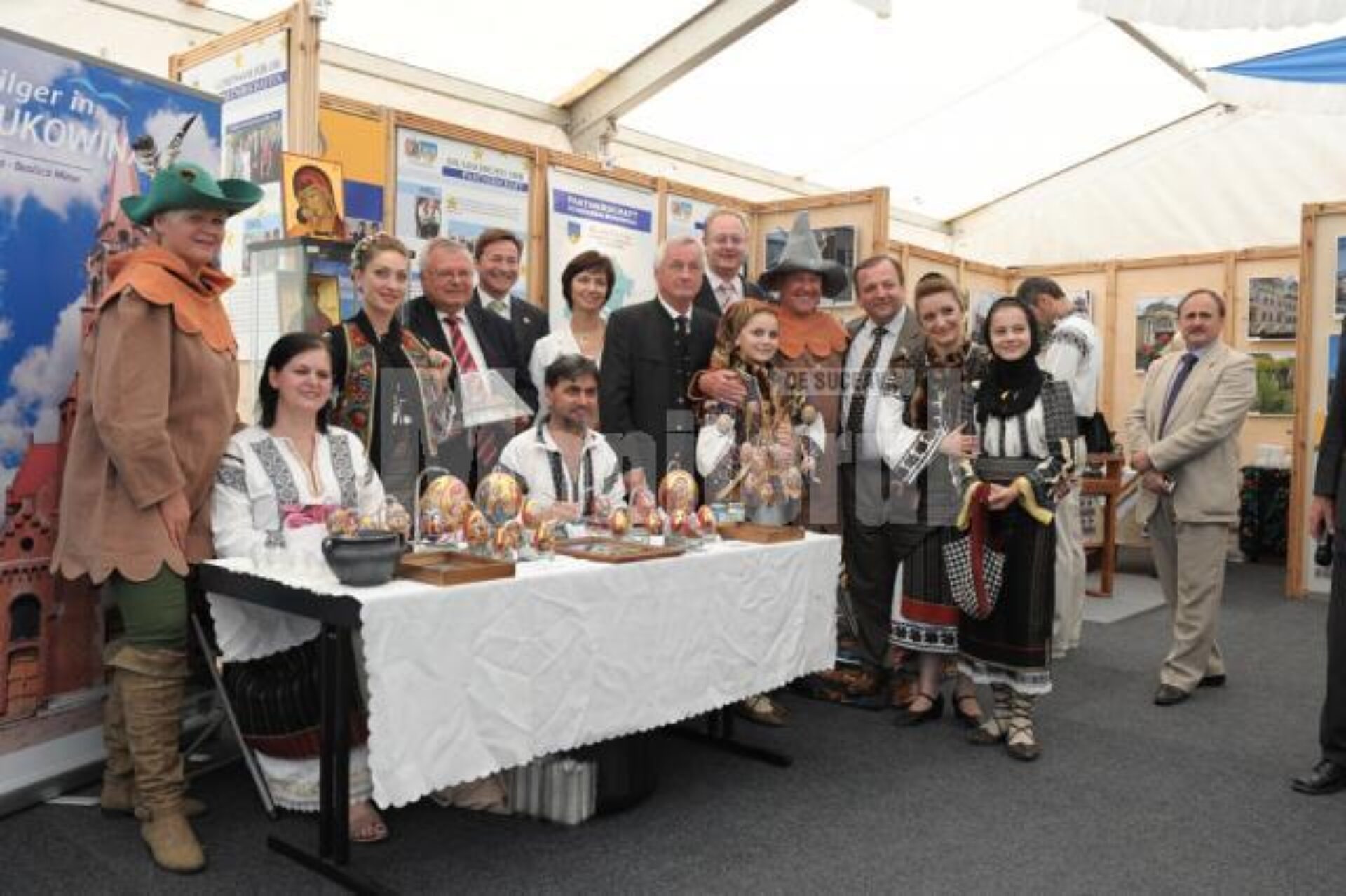 Pentru vizitatorii germani, cel mai atractiv punct la standul Sucevei au fost frumoasele tinere în costume populare. Chiar la prezentarea oficială, mulți localnici le-au cerut tinerelor permisiunea să se fotografieze împreună cu ele.