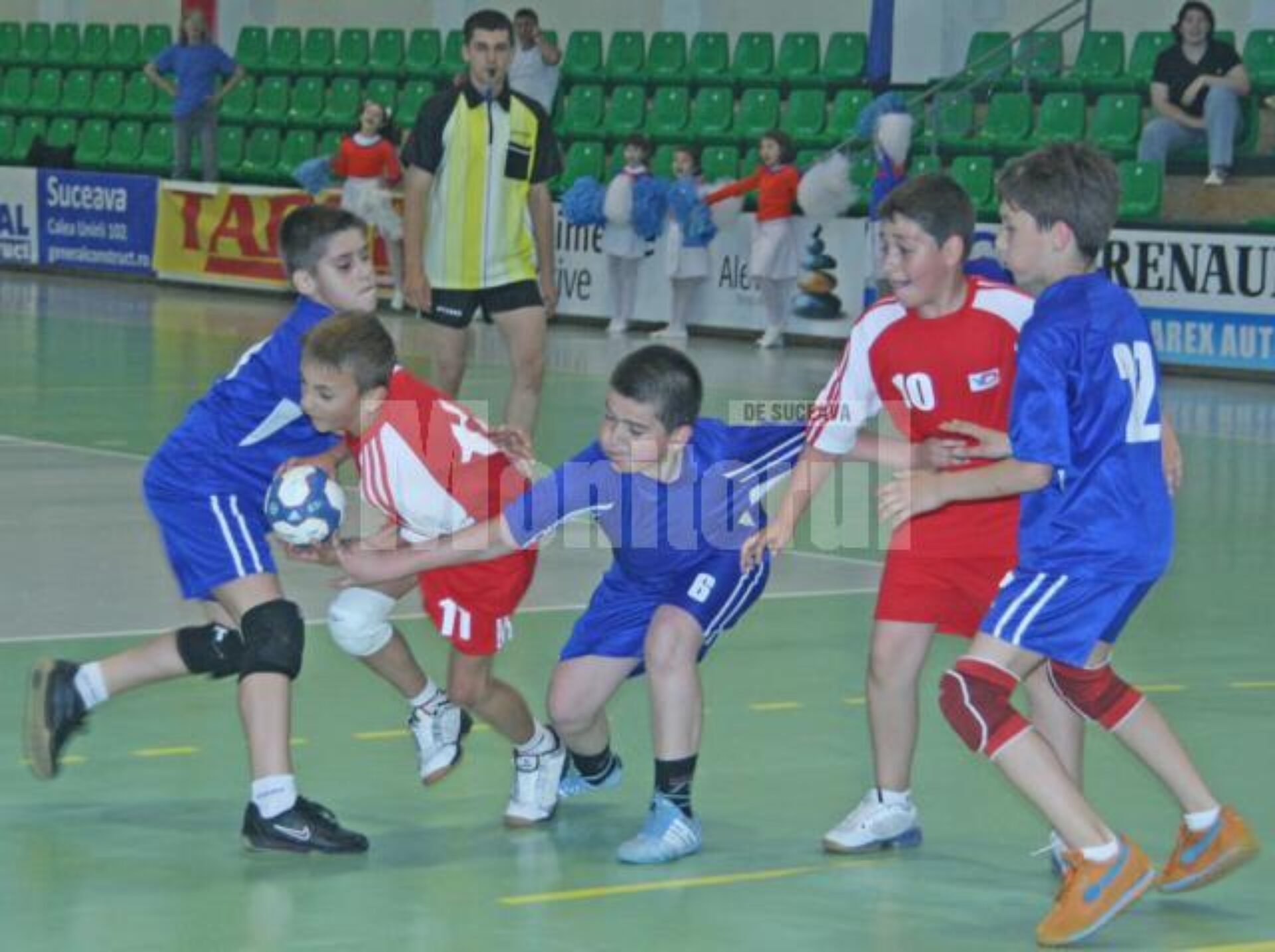Cei mai tineri dintre handbaliștii Liceului cu Program Sportiv Suceava au început cu dreptul lupta pentru o medalie a Campionatului Național de Minihandbal, după ce s-au impus în ambele partide disputate în prima zi a turneului final ce se desfășoară la Suceava. În primul meci, handbaliștii suceveni, pregătiți de Răzvan Bernicu s-au impus chiar în fața campioanei de anul trecut, Universitatea Transilvania Cluj, după un meci spectaculos, foarte strâns și cu răsturnări de scor, rezultat final 9 – 8. Deși aveau în față o echipă ce avea în componență cel puțin trei jucători mult mai înalți decât ei, sucevenii s-au apărat foarte bine, nepermițându-le oaspeților să se distanțeze la mai mult de două goluri. În minutul 12 din 15, câte are o repriză la minihandbal, LPS Suceava a reușit să egaleze la 3 – 3 și a terminat prima repriză în avantaj, scor 5 – 4. Partea a doua a jocului a fost una la fel de echilibrată, în care sucevenii s-au dus la două goluri, dar au fost egalați și conduși din nou la un gol, în minutul 18, scor 6 – 7. Finalul a fost unul pe „muchie de cuțit”, în care după ce a trimis de trei ori mingea în bară, LPS Suceava a preluat conducerea la 9 – 8 și a conservat rezultatul timp de două minute, interval de timp în care portarul Denis Caunic a apărat o lovitură de la 7 metri, iar oaspeții au nimerit bara la ultimul atac al meciului.