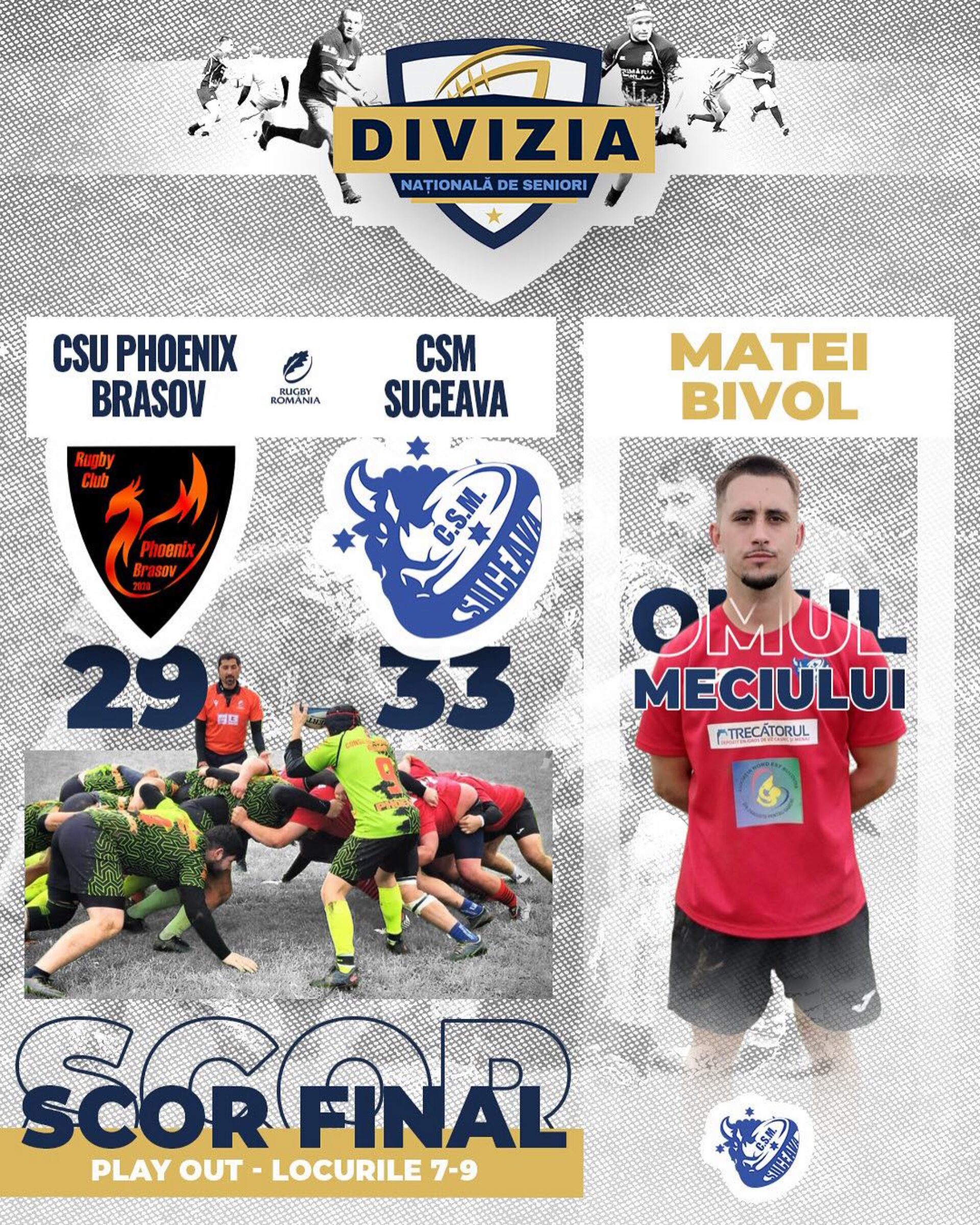 Omul meciului a fost declarat Matei Bivol, care a marcat 18 puncte, din patru lovituri de pedeapsă și trei transformări.