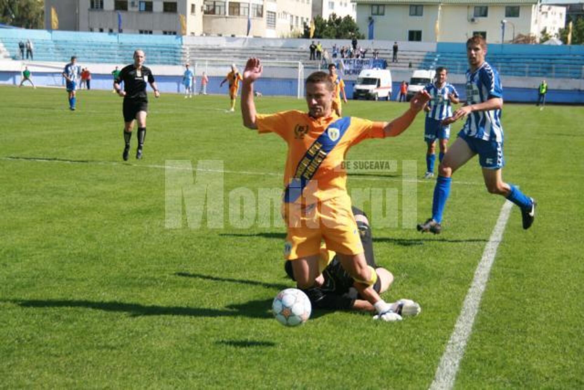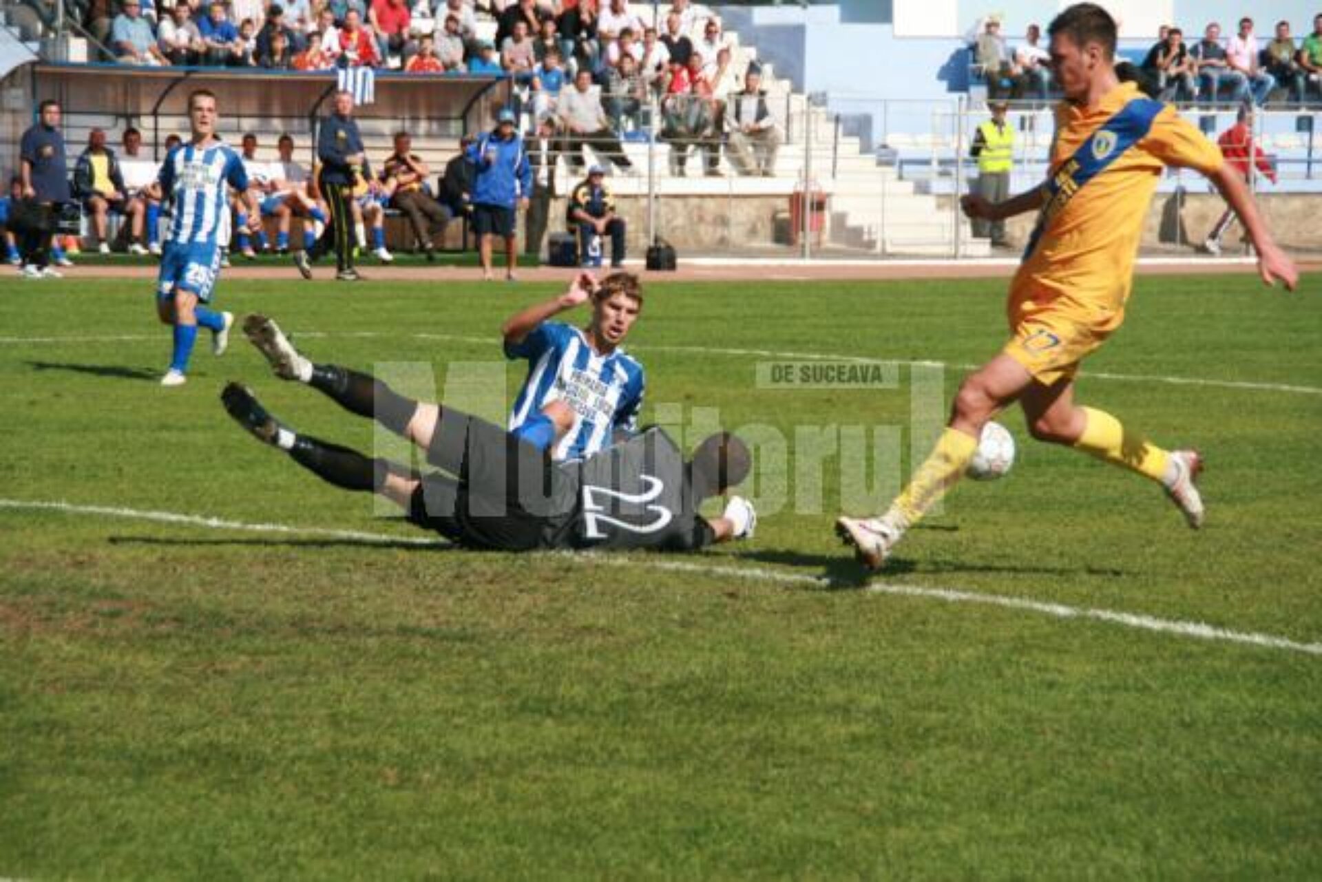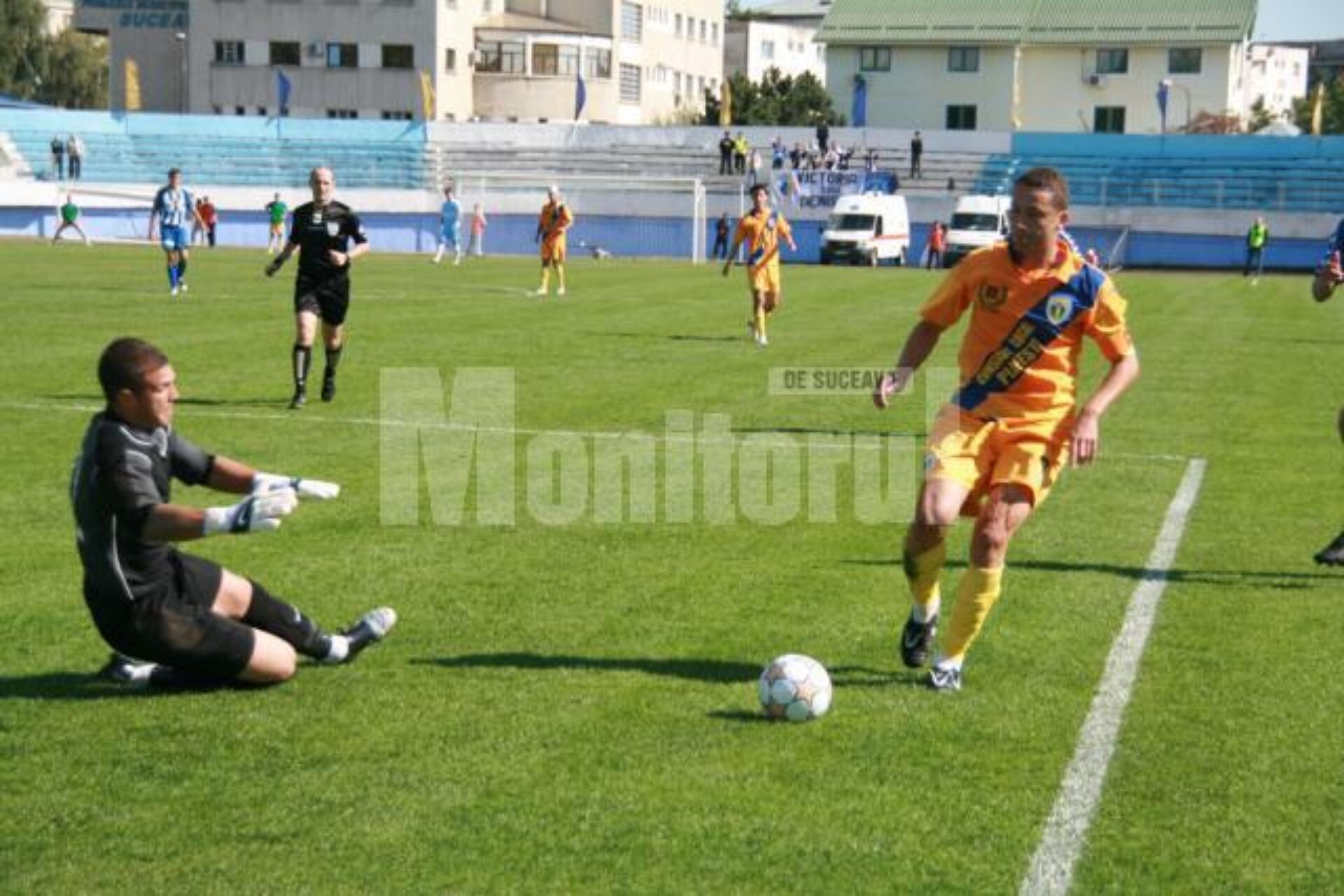 Începutul de partidă a fost cum nu se poate mai fericit pentru suceveni, care s-au trezit în avantaj încă din minutul 10, când Tomaz a deviat cu capul în plasă o centrare venită de pe partea dreaptă, de la Tomescu. Din nefericire, sucevenii nu au știut să negocieze deloc bine acest avans luat prematur și au revenit rapid la deja celebrul lor joc de uzură.