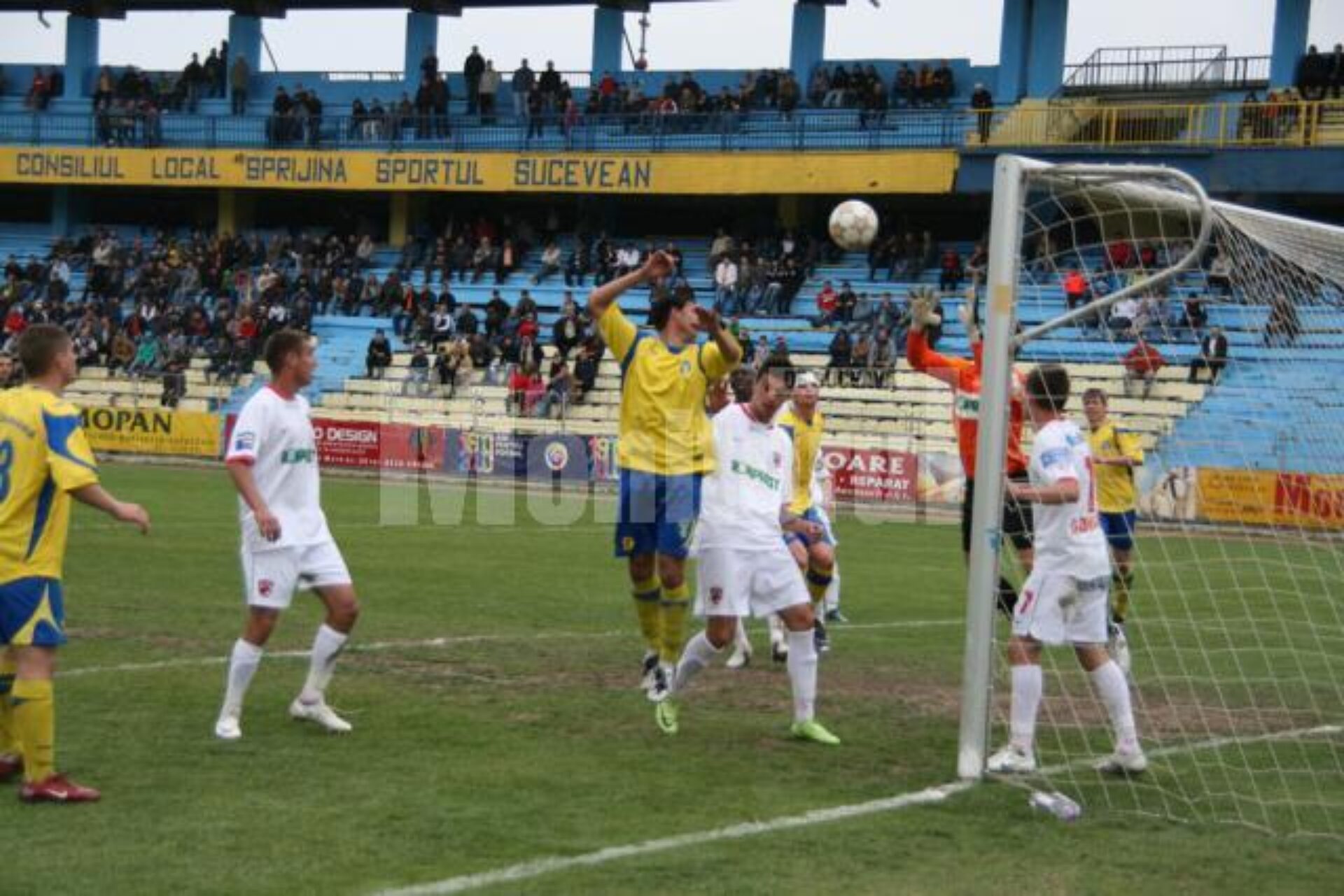 Chiar dacă pot motiva că au avut și ghinion, deoarece au trimis de două ori mingea în bara porții inspiratului Andrei Vlad, sucevenii au pierdut totuși fără drept de apel întâlnirea cu echipa „satelit” a lui Dinamo. Ca și cum această supărare nu era de ajuns, fotbaliștii lui Ovidiu Murariu au mai avut parte de o surpriză neplăcută și la finalul întâlnirii, când au aflat despre victoria Științei la Snagov, rezultat care i-a coborât din nou pe o poziție retrogradabilă. Și totuși, după felul cum începuse meciul de pe Areni, nimic nu părea să prevestească o sâmbătă atât de neagră. Onciu a luat transversala la țintă în minutul 9, după care Homneac a șutat slab dintr-o poziție foarte bună. A urmat o mare ocazie irosită de Șuleru, care a preferat să șuteze la poartă dintr-un unghi mort în loc să centreze în fața porții, acolo erau demarcați doi coechipieri. Mai apoi, Celpan a trimis și el un șut centrare prin fața porții, însă Guriță și Homneac au ratat de puțin întâlnirea cu balonul. Abia în minutul 25 au ripostat în atac și dinamoviștii, prin Bădăluță, care a șutat de la 14 metri puțin pe lângă bară. Celpan și Homneac nu au putut să-l învingă pe Vlad la două acțiuni consecutive de atac ale Cetății purtate în minutele 34 și 35, pentru ca repriza să se încheie cu o mare ratare a alb-roșilor, care au trimis mingea în transversală prin același insistent Bădăluță. Din nefericire, partea secundă a debutat sub cele mai proaste auspicii pentru suceveni. Melinte a centrat de pe partea dreaptă în fața porții sucevene, iar francezul Mendy, venit din spate, a reluat din careul de 6 metri balonul în poarta lui Rohețki. Cu spectrul retrogradării în față, galben-albaștrii s-au avântat și mai mult spre poarta oaspeților, însă au făcut-o fără prea multă luciditate. Din disperarea sucevenilor au ieșit însă câteva bune ocazii de egalare, irosite pe rând de Colban, Dumitru, Celpan sau Onciu. Nici dinamoviștii nu au stat însă cu mâinile în sân și au replicat de fiecare dată periculos când au avut posibilitatea. La una dintre aceste contre, Mendy a profitat de așezarea greșită în teren a apărătorilor Cetății și i-a pasat lui Predescu, care a punctat cu un șut imparabil de la 12 metri. Acest gol avut darul să-i bulverseze de tot pe fotbaliștii lui Ovidiu Murariu, care pe final au avut totuși forța să mai trimită o dată balonul în transversală prin Golofca.