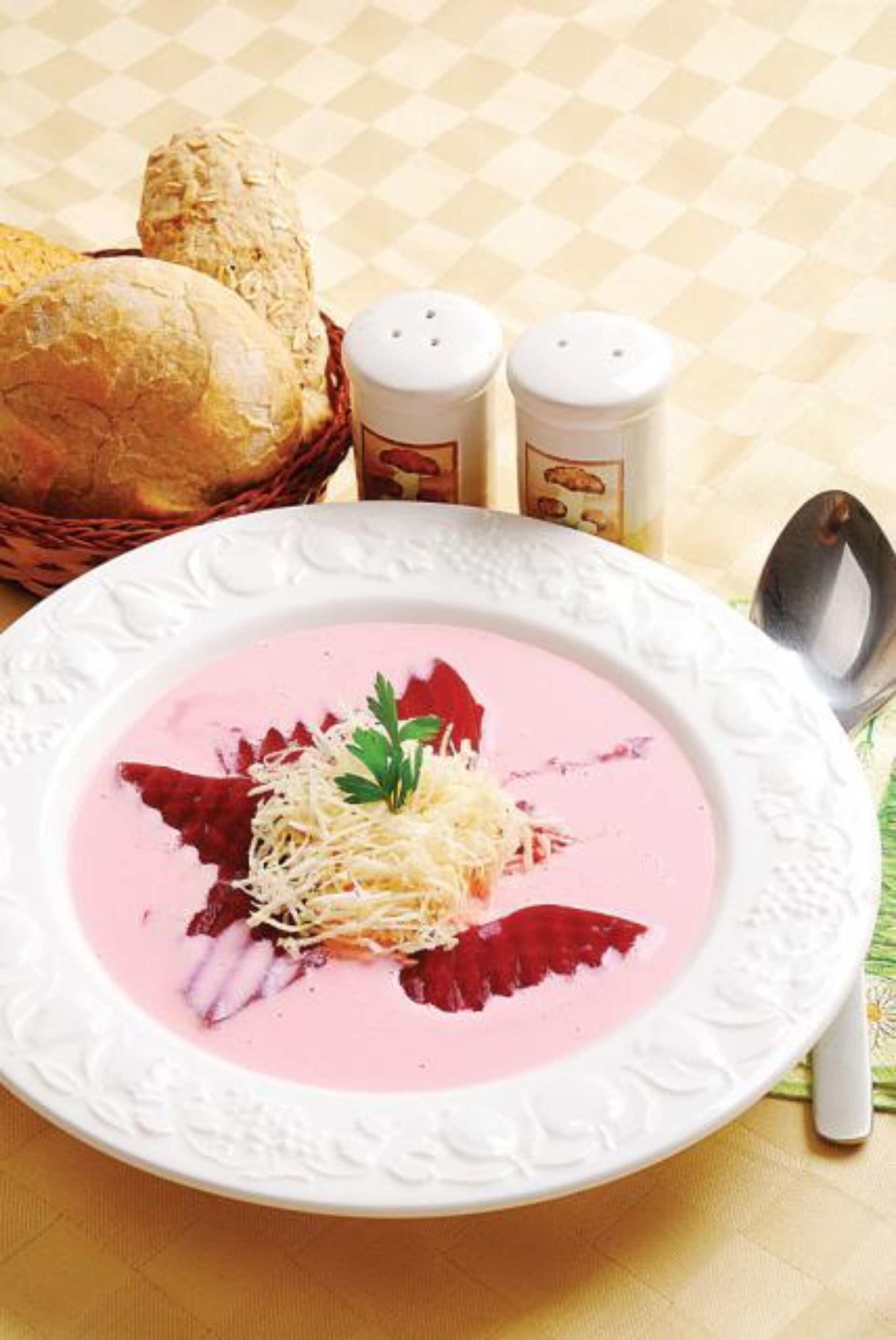 Se strecoară sfecla și se taie în fâșii subțiri. Zeama rămasă se amestecă apoi cu 1 litru apă și se dă în clocot. Smântâna se amestecă bine cu făina și se toarnă în supa clocotindă, puțin câte puțin, amestecând încontinuu. Se lasă să fiarbă 10 minute, după care se pune sfecla tocată și se mai lasă 5 minute la fiert, apoi se potrivește de sare și piper și se mai dă în 2-3 clocote. Se servește rece, cu hreanul proaspăt dat pe răzătoarea mică, presărat pe deasupra.