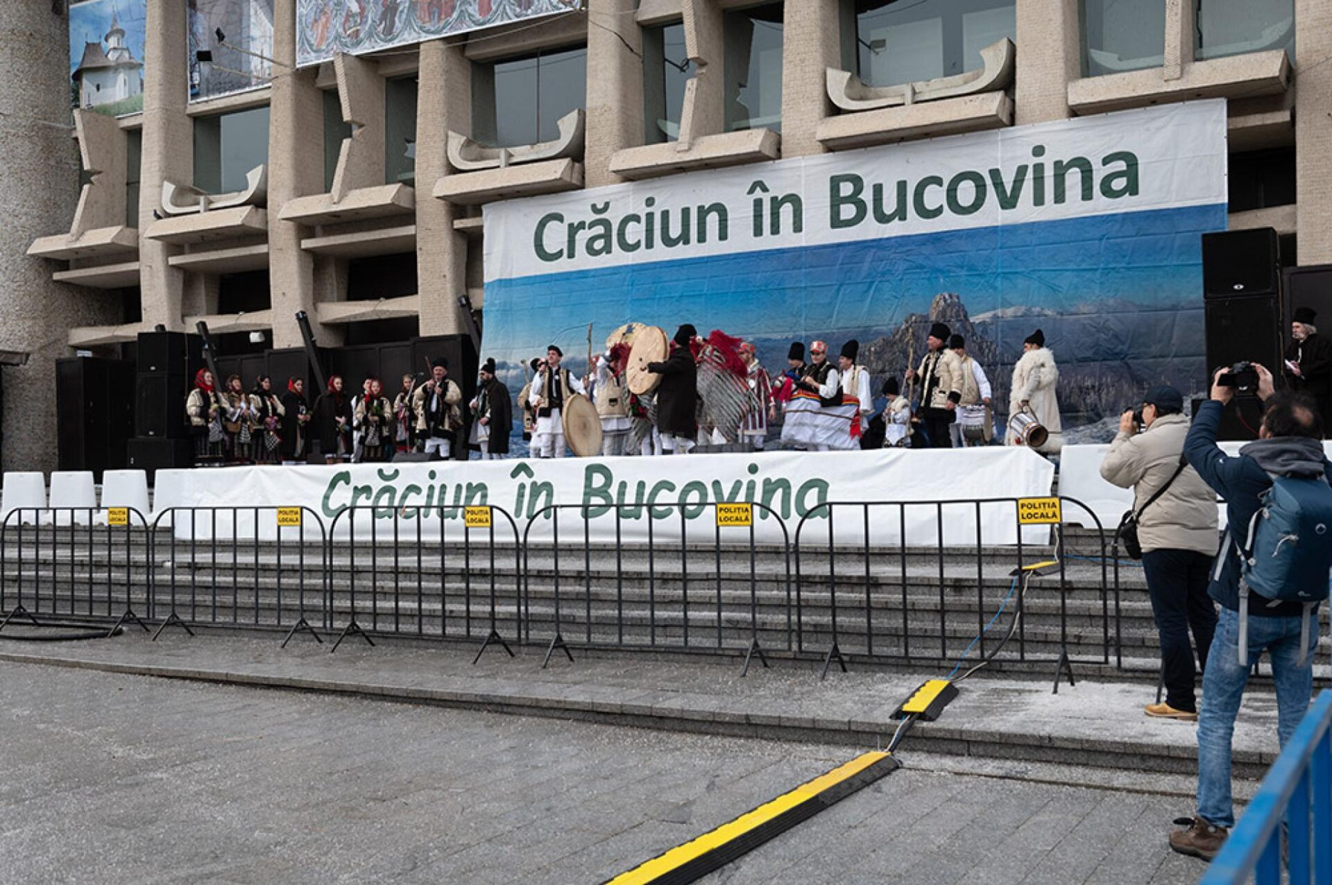 Și pentru a respecta regulile impuse de pandemie, cetele de urători au fost organizate sub forma unor „ateliere” pentru a permite distanțarea între participanți, fiecare prezentând obiceiurile specifice zonei din care a venit. Fiecare grup a urcat apoi pe scena din fața Casei de Cultură, acolo unde sub un imens afiș cu numele proiectului „Crăciun în Bucovina” i-au încântat pe cei prezenți cu spectacolele de obiceiuri de Anul Nou.