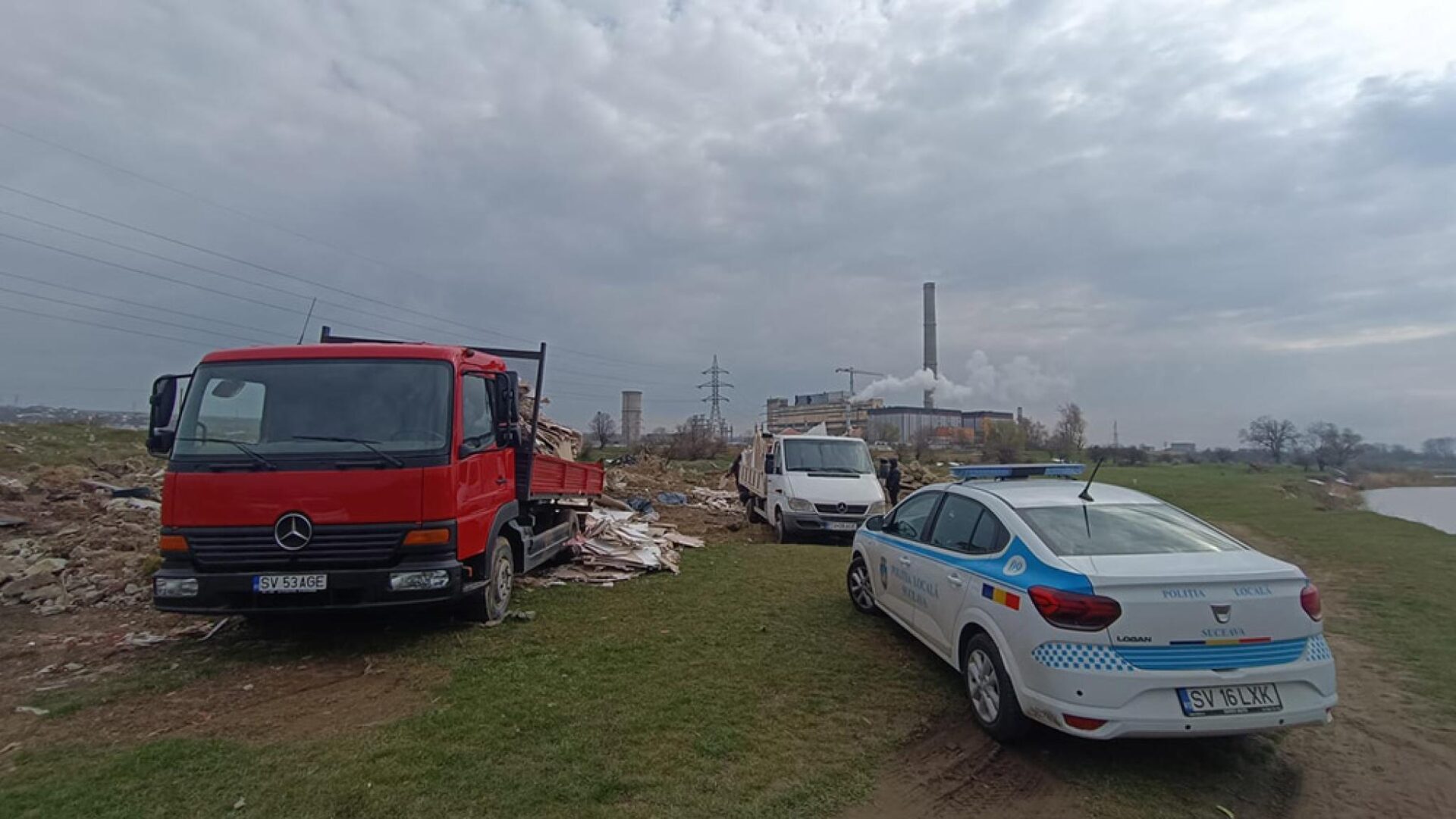 Surprinși în flagrant de Poliția Locală în timp ce aruncau gunoiul pe malul râului Suceava