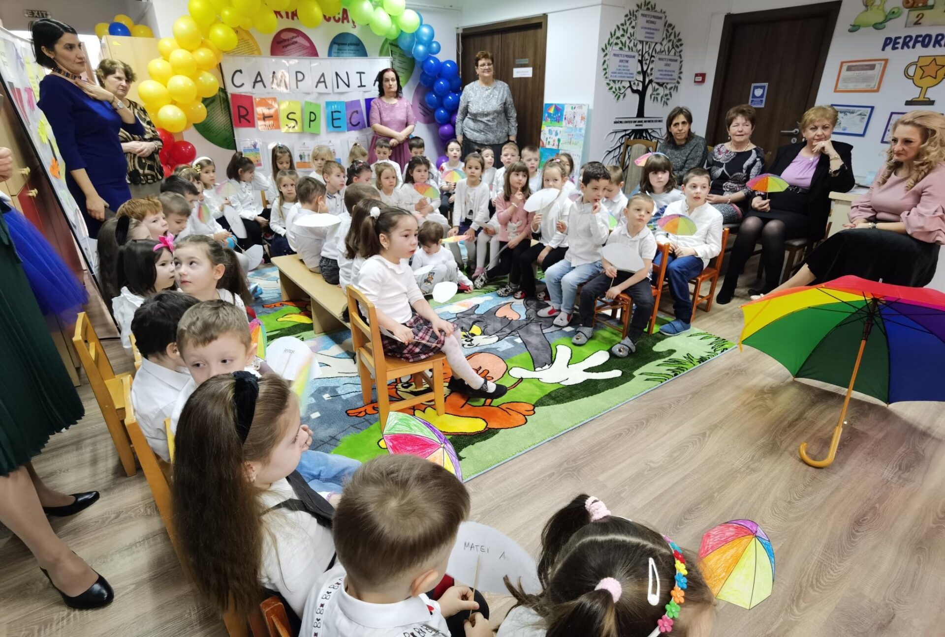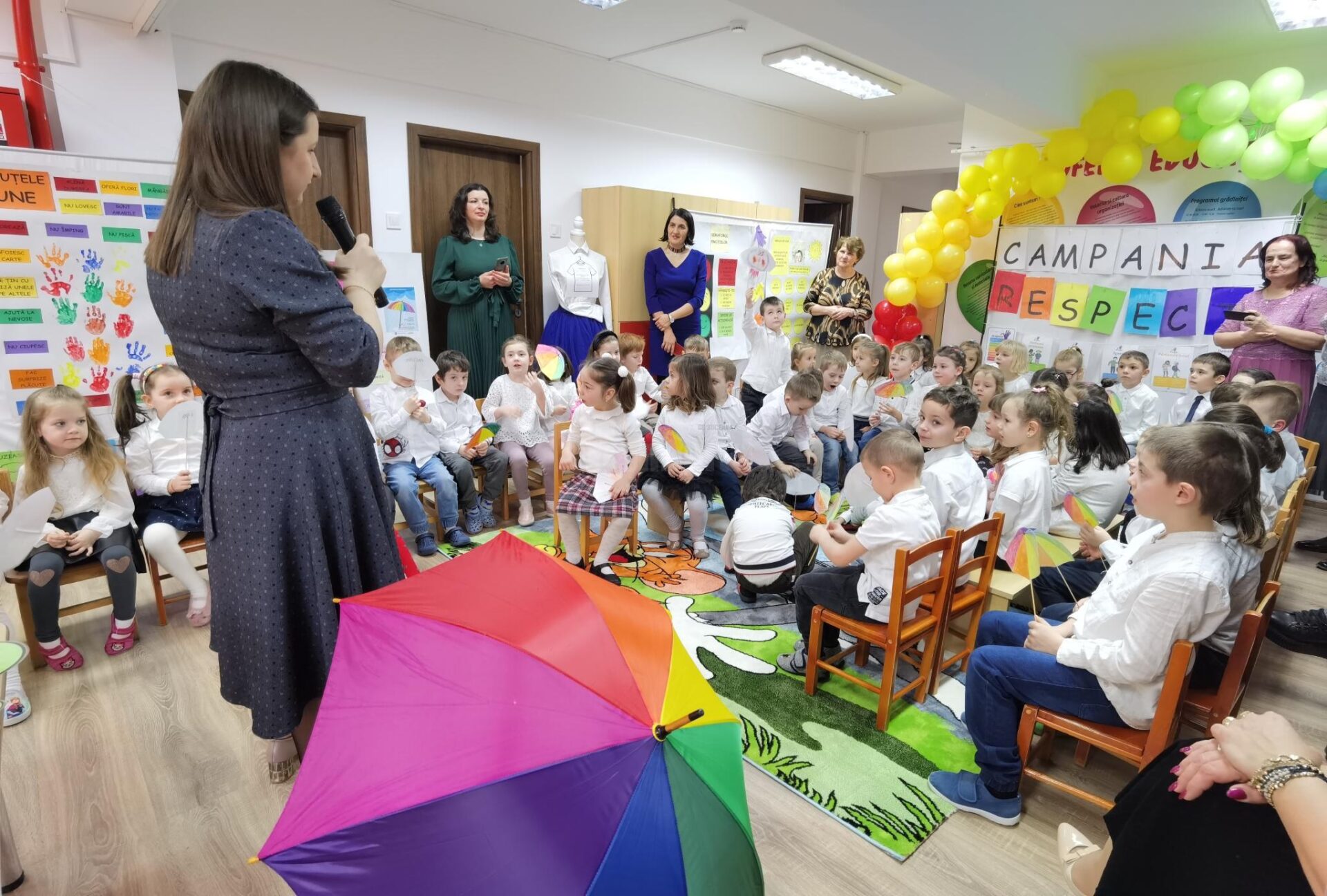 „La vârsta preșcolară, copilul are nevoie de suport și sprijin pentru a învăța comportamente sociale. Astfel, pentru a promova comportamentul civilizat, bunătatea, respectul, prietenia, toleranța, în cadrul campaniei RESPECT s-au desfășurat activități și jocuri precum „Semaforul emoțiilor”, „Cum arată un prieten respectuos”, „Ce fac mânuțele bune”, „Regula de aur”, „Cuvinte frumoase”, „În vizită la prietenii Mei”, ”Copacul prieteniei”, „Ghidul unui copil respectuos”.